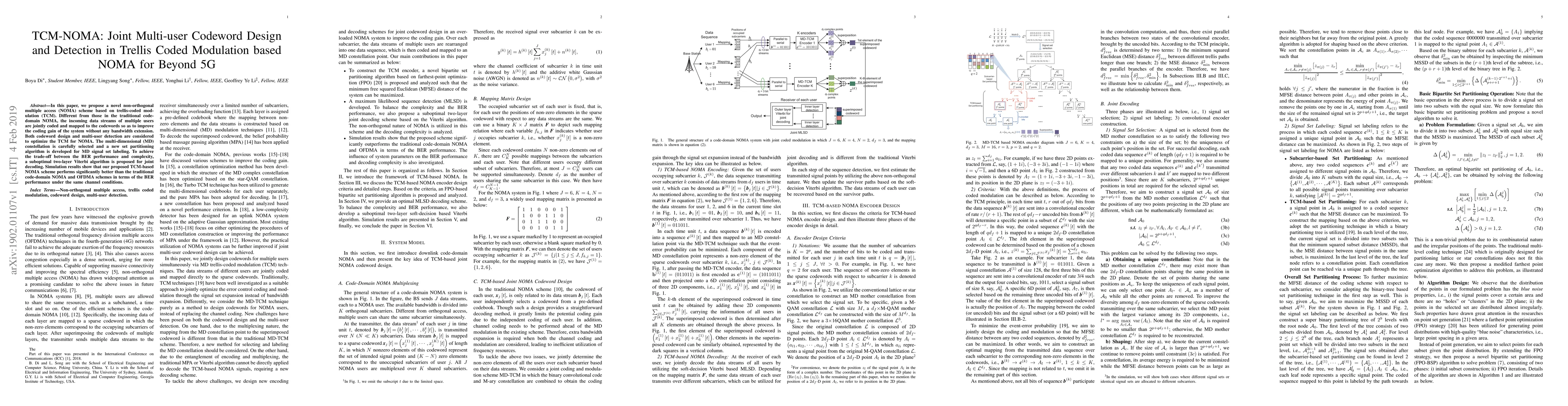A novel NOMA scheme based on trellis-coded modulation (TCM) is proposed for Beyond 5G networks, improving coding gain without bandwidth extension through joint data stream coding and multi-user detection.