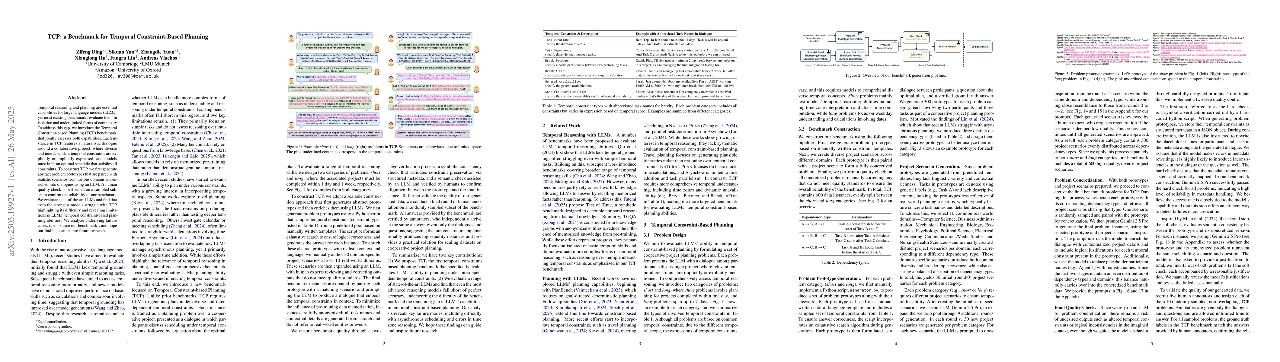 TCP benchmark, which assesses both temporal reasoning and planning capabilities of LLMs in naturalistic dialogue settings with complex temporal constraints.