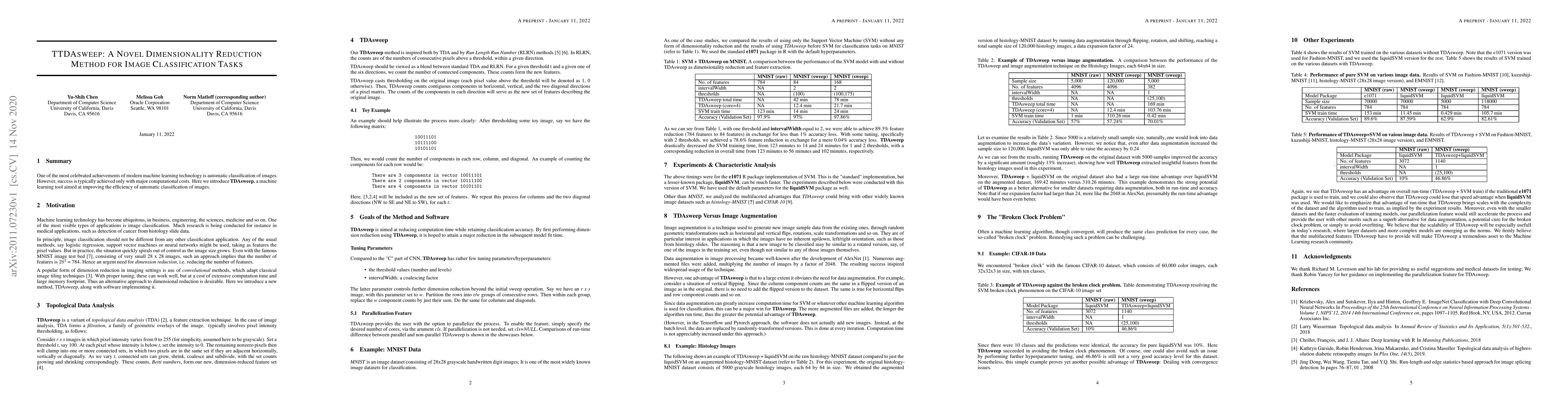 One of the most celebrated achievements of modern machine learning technology is automatic classification of images. However, success is typically achieved only with major computational costs. Here we introduce TDAsweep, a machine learning tool aimed at improving the efficiency of automatic classification of images.