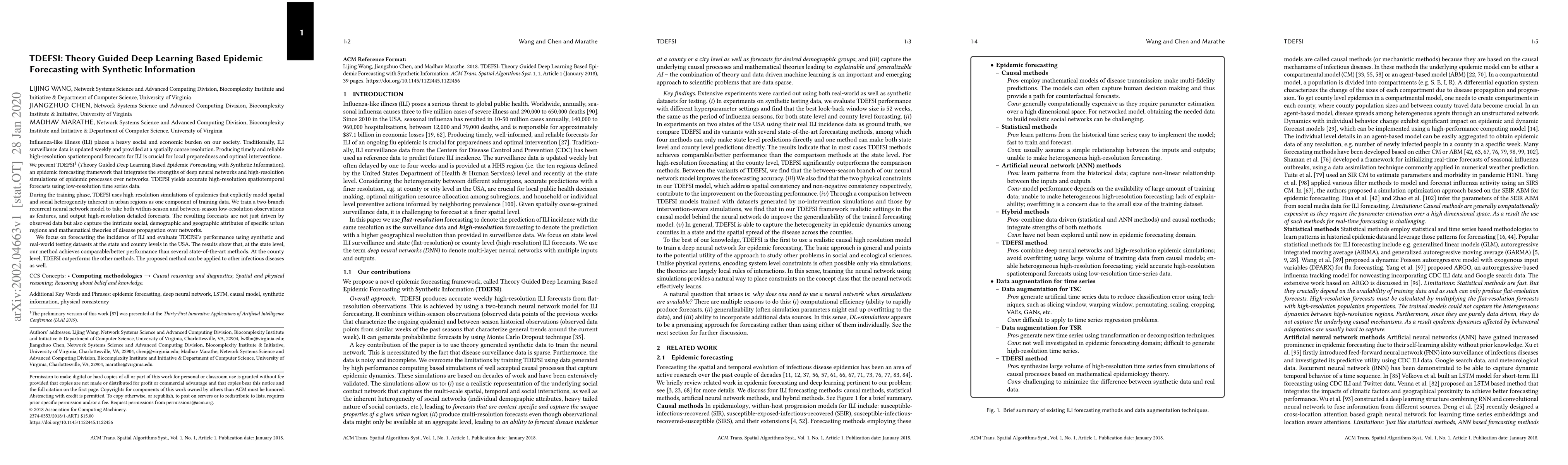 TDEFSI integrates deep learning with high-resolution epidemic simulations to produce accurate spatiotemporal forecasts for influenza-like illness (ILI). It outperforms other methods at both state and county levels, demonstrating the value of incorporating social, demographic, and geographic factors into epidemic forecasting.