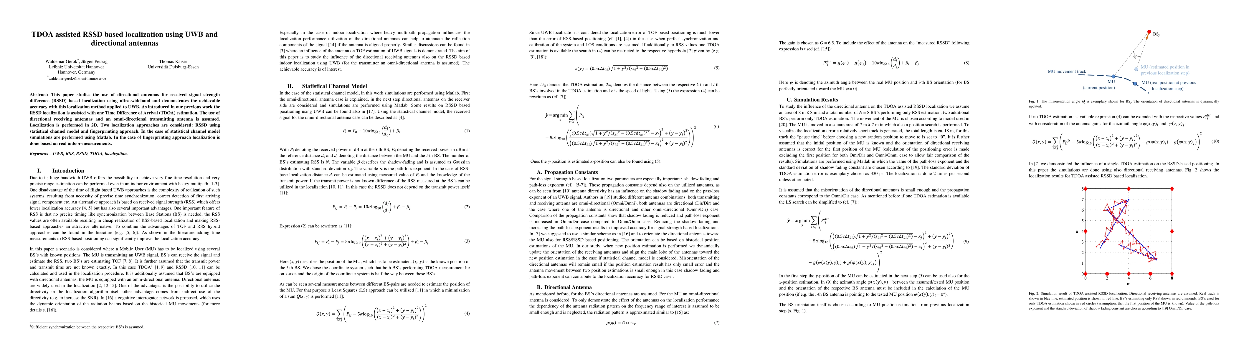 This paper explores the use of directional antennas to enhance RSSD-based localization using ultra-wideband (UWB) technology, assisted by TDOA estimation. It evaluates two localization methods: one using a statistical channel model and another based on real indoor measurements.