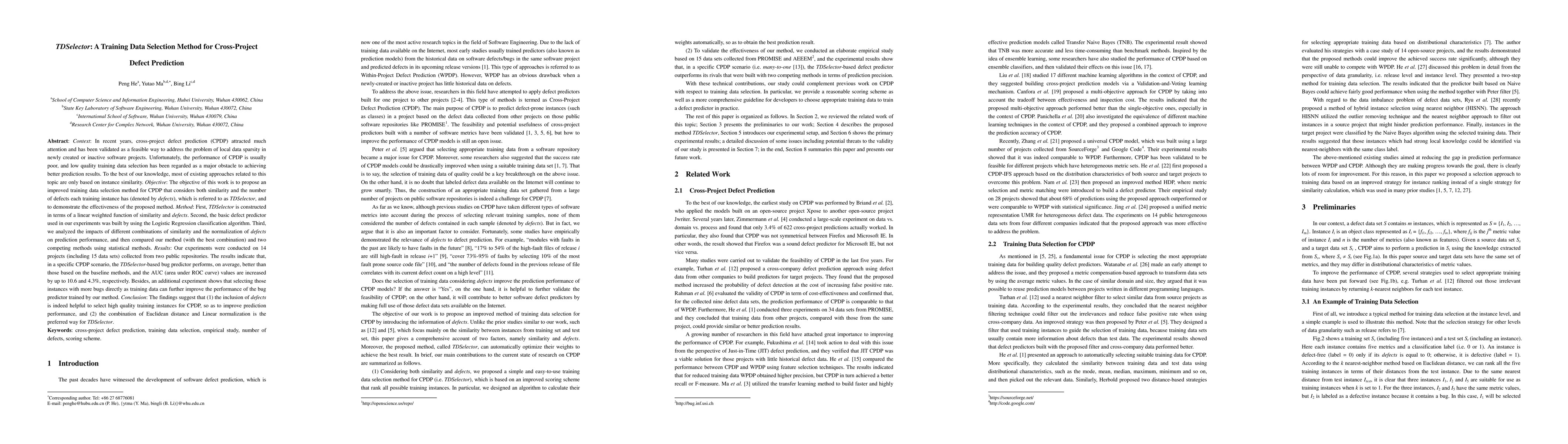 TDSelector is a novel method for selecting training data for cross-project defect prediction, aiming to improve prediction accuracy by considering both instance similarity and defect count. Experiments on 14 projects show that TDSelector enhances prediction performance, increasing AUC values by up to 10.6% compared to baseline methods.