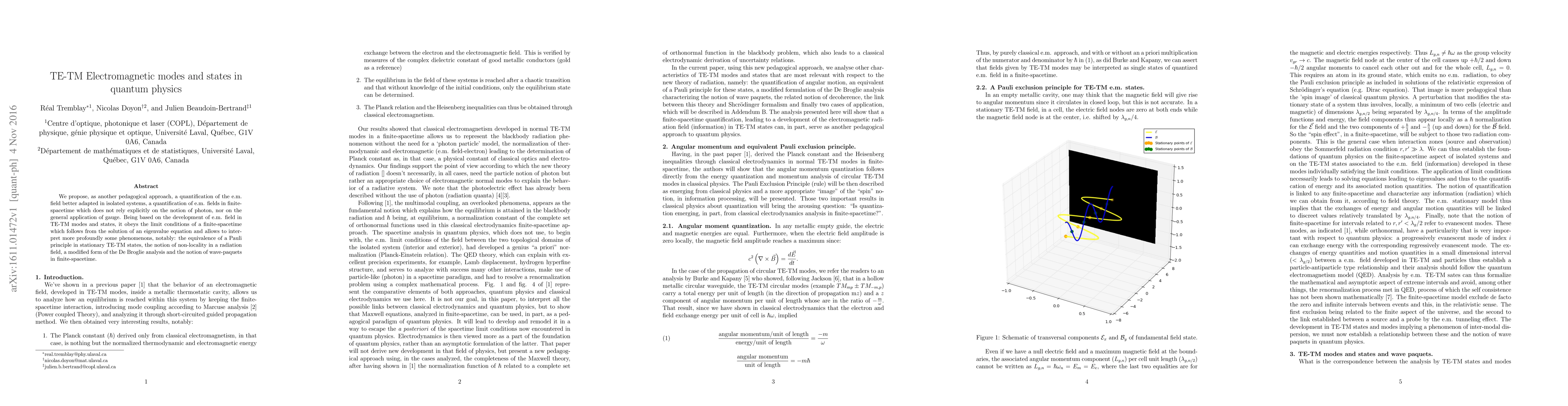 This paper proposes a new approach to understanding electromagnetic fields in quantum physics, focusing on TE-TM modes and states that can describe finite-spacetime phenomena without relying on photons or gauge theories.