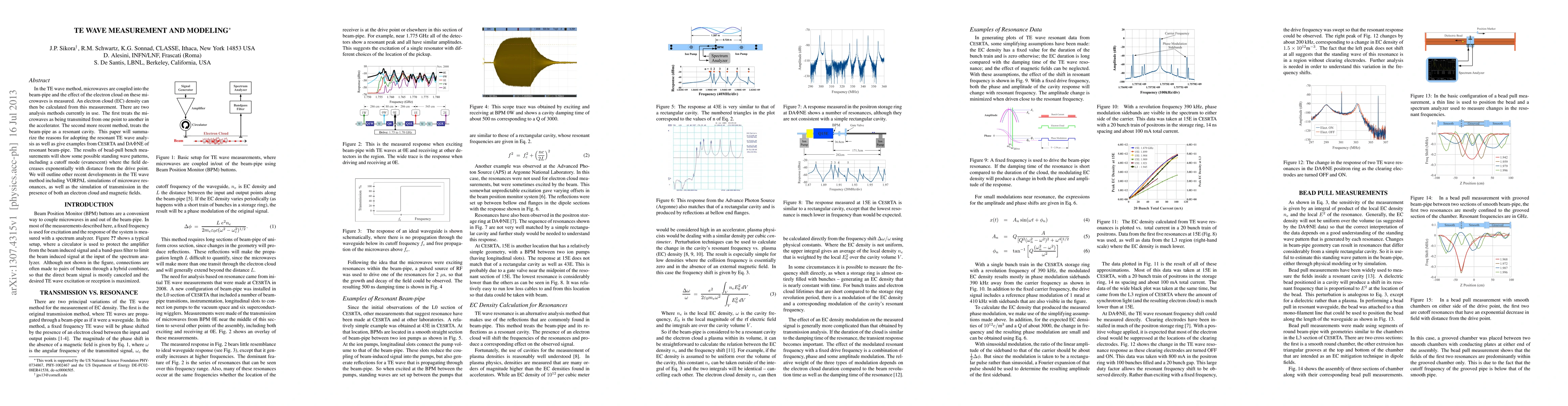 In the TE wave method, microwaves are coupled into the beam-pipe and the effect of the electron cloud on these microwaves is measured. An electron cloud (EC) density can then be calculated from this measurement. There are two analysis methods currently in use. The first treats the microwaves as being transmitted from one point to another in the accelerator. The second more recent method, treats the beam-pipe as a resonant cavity. This paper will summarize the reasons for adopting the resonant TE wave analysis as well as give examples from CESRTA and DA{\Phi}NE of resonant beam-pipe. The results of bead-pull bench measurements will show some possible standing wave patterns, including a cutoff mode (evanescent) where the field decreases exponentially with distance from the drive point. We will outline other recent developments in the TE wave method including VORPAL simulations of microwave resonances, as well as the simulation of transmission in the presence of both an electron cloud and magnetic fields.