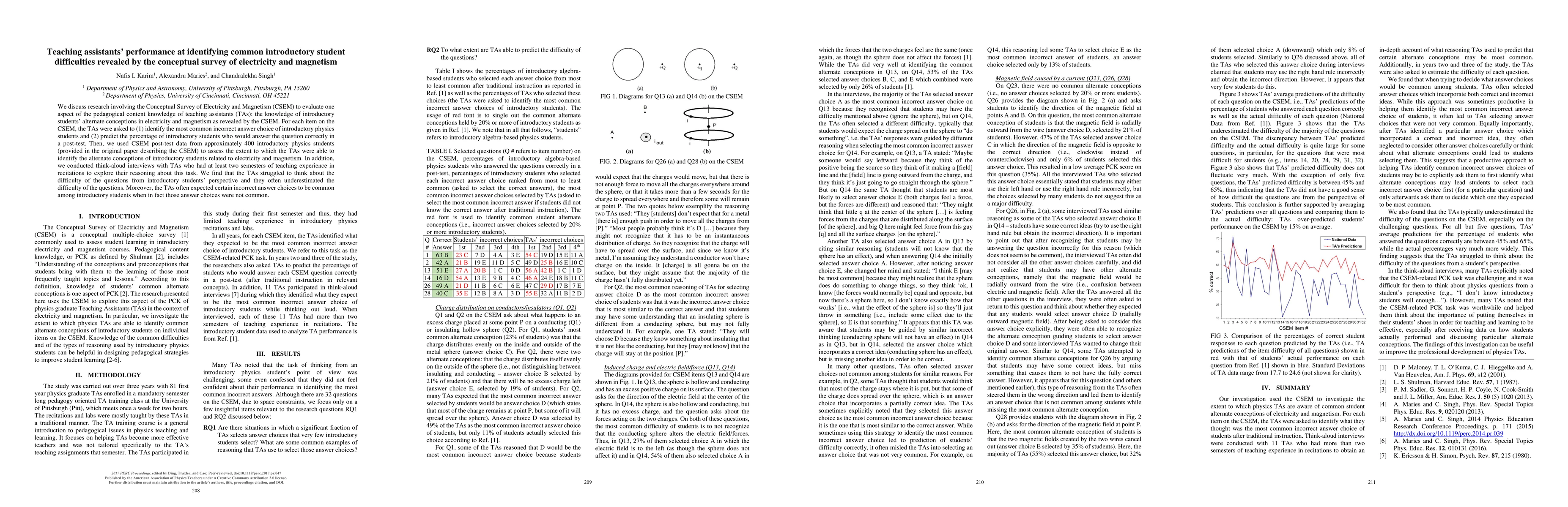 This study evaluates teaching assistants' ability to identify students' common misconceptions in electricity and magnetism using the Conceptual Survey of Electricity and Magnetism (CSEM). TAs underestimated students' difficulties and often incorrectly predicted common incorrect answers, indicating a gap in their pedagogical content knowledge.