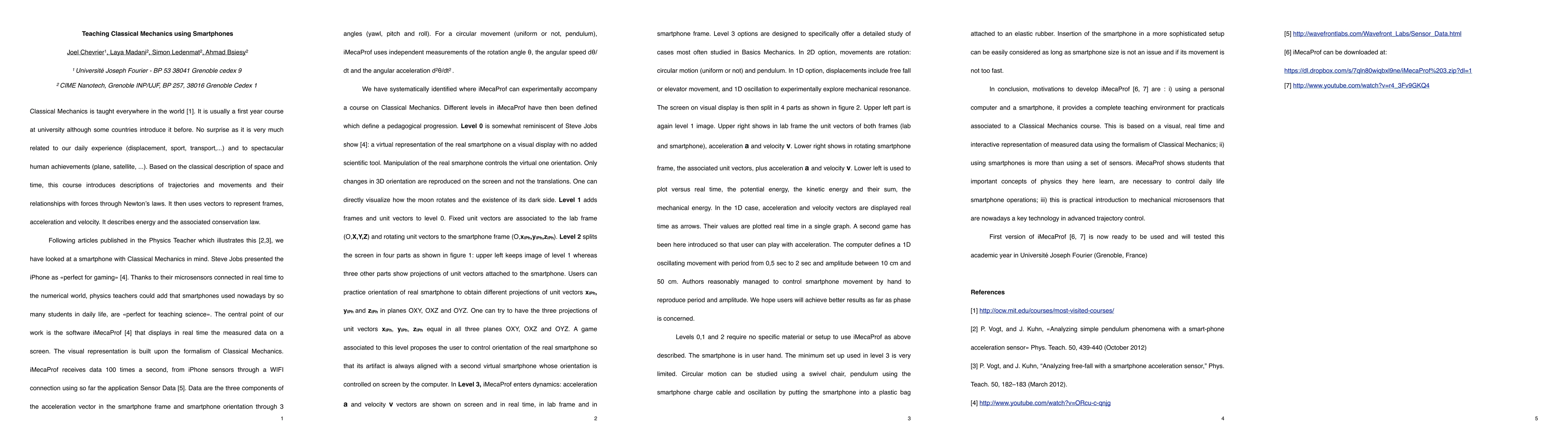 Using a personal computer and a smartphone, iMecaProf is a software that provides a complete teaching environment for practicals associated to a Classical Mechanics course. iMecaProf proposes a visual, real time and interactive representation of data transmitted by a smartphone using the formalism of Classical Mechanics. Using smartphones is more than using a set of sensors. iMecaProf shows students that important concepts of physics they here learn, are necessary to control daily life smartphone operations. This is practical introduction to mechanical microsensors that are nowadays a key technology in advanced trajectory control. First version of iMecaProf can be freely downloaded. It will be tested this academic year in Universit\'e Joseph Fourier (Grenoble, France)