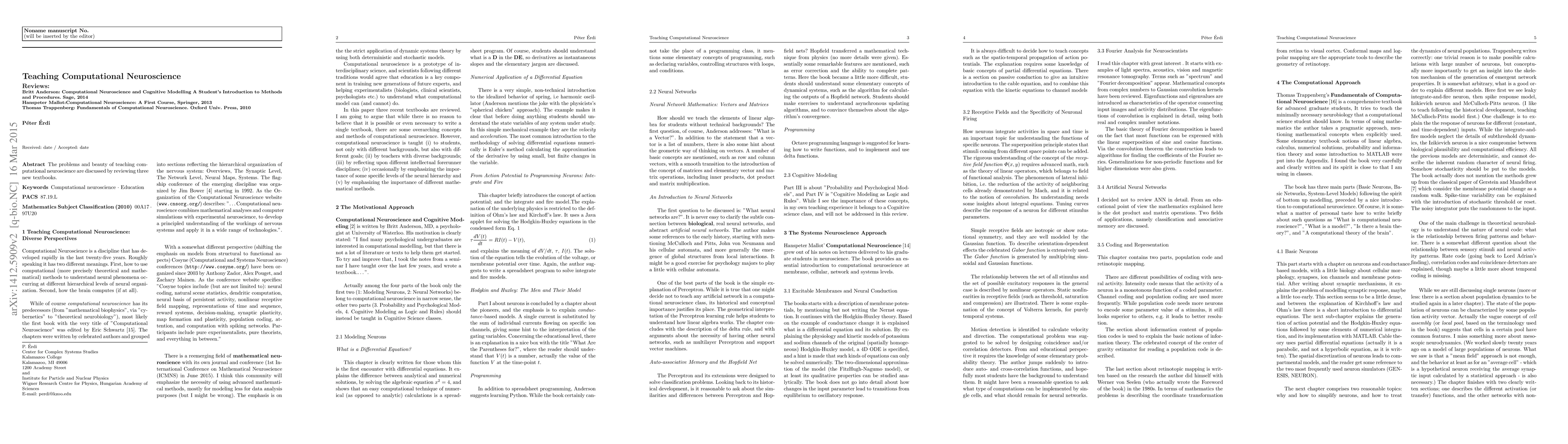 Summary: This paper explores the challenges and rewards of teaching computational neuroscience, evaluating three new textbooks to highlight their contributions to the field. The review underscores the importance of these resources in effectively conveying complex concepts.