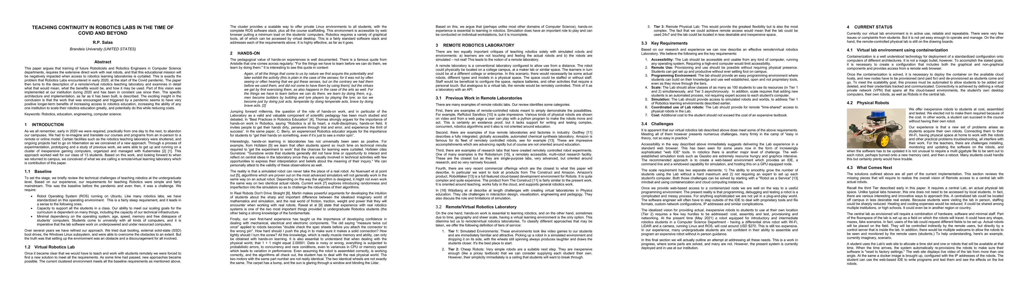 A research paper explores how remote/virtual robotics labs can increase access to robotics education, especially during times of pandemic-induced lab closures, and has seen positive benefits in its implementation.