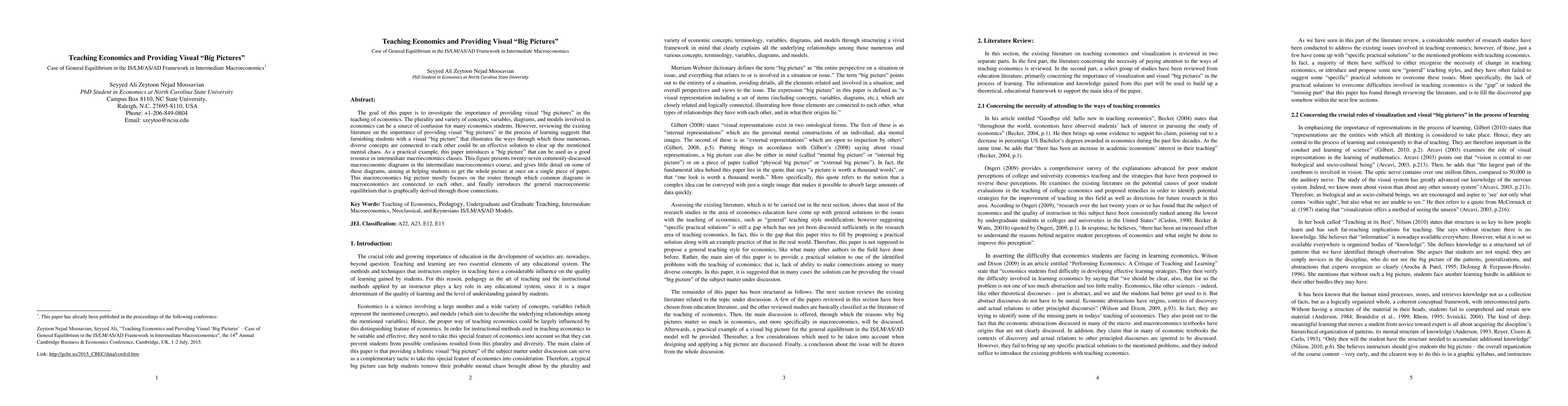 While the importance of visual aids in education is recognized, this paper specifically targets the complexities of economics teaching by proposing a comprehensive 'big picture' tailored for intermediate macroeconomics, filling a gap in practical solutions for structuring economic concepts.