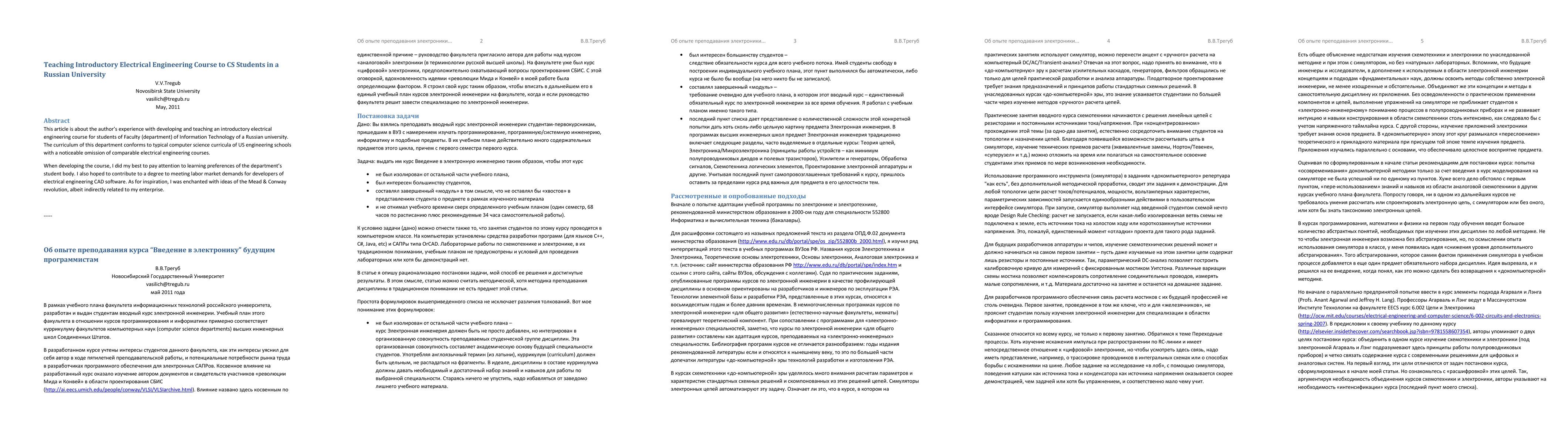 This paper details the author's experience in developing and teaching an introductory electrical engineering course tailored for computer science students at a Russian university, aiming to bridge curriculum gaps and meet labor market needs for electrical engineering CAD software developers. The author draws inspiration from the Mead & Conway revolution in electronics design.