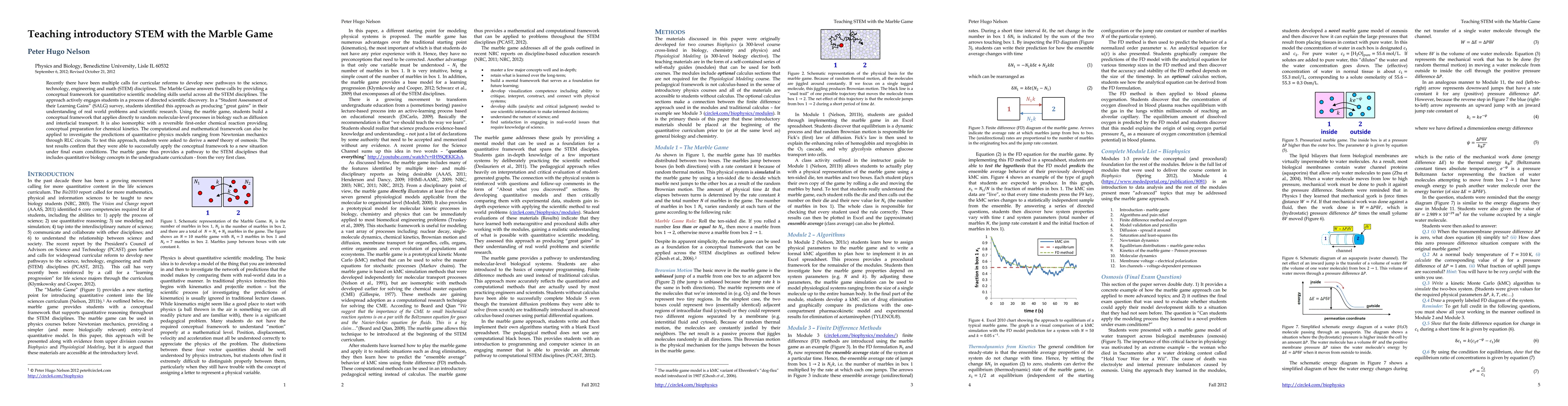 This paper proposes the Marble Game as an innovative framework for teaching introductory STEM subjects, emphasizing quantitative scientific modeling and directed scientific discovery. Students reported significant learning gains and successfully applied the framework to derive a novel theory of osmosis, demonstrating its effectiveness in fostering understanding across various STEM disciplines.