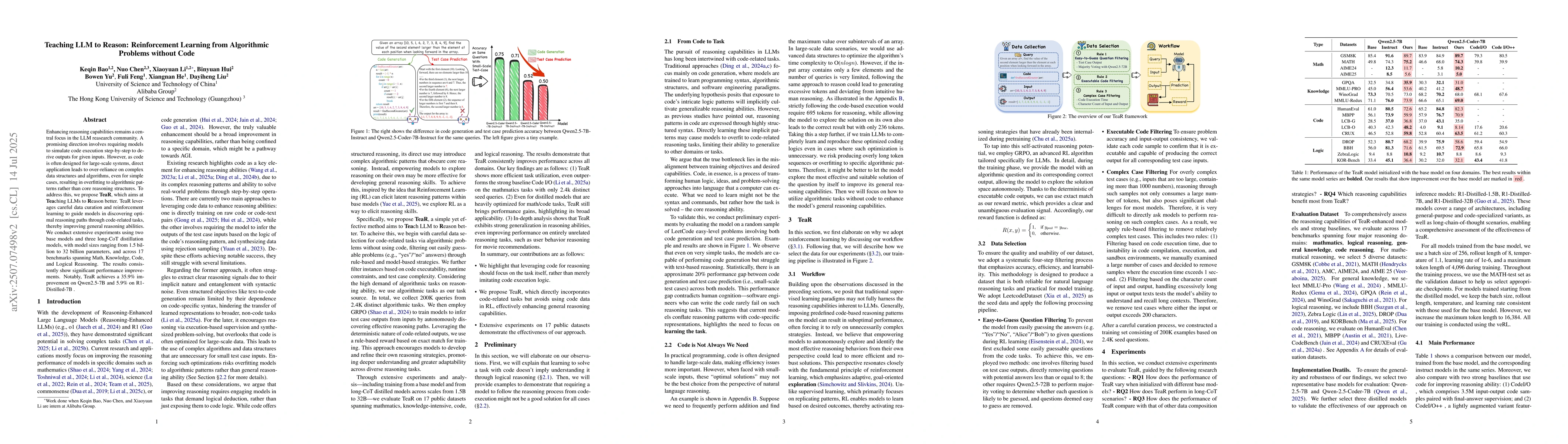 Enhancing reasoning capabilities remains a central focus in the LLM reasearch community. A promising direction involves requiring models to simulate code execution step-by-step to derive outputs for given inputs. However, as code is often designed for large-scale systems, direct application leads to over-reliance on complex data structures and algorithms, even for simple cases, resulting in overfitting to algorithmic patterns rather than core reasoning structures. To address this, we propose TeaR, which aims at teaching LLMs to reason better. TeaR leverages careful data curation and reinforcement learning to guide models in discovering optimal reasoning paths through code-related tasks, thereby improving general reasoning abilities. We conduct extensive experiments using two base models and three long-CoT distillation models, with model sizes ranging from 1.5 billion to 32 billion parameters, and across 17 benchmarks spanning Math, Knowledge, Code, and Logical Reasoning. The results consistently show significant performance improvements. Notably, TeaR achieves a 35.9% improvement on Qwen2.5-7B and 5.9% on R1-Distilled-7B.