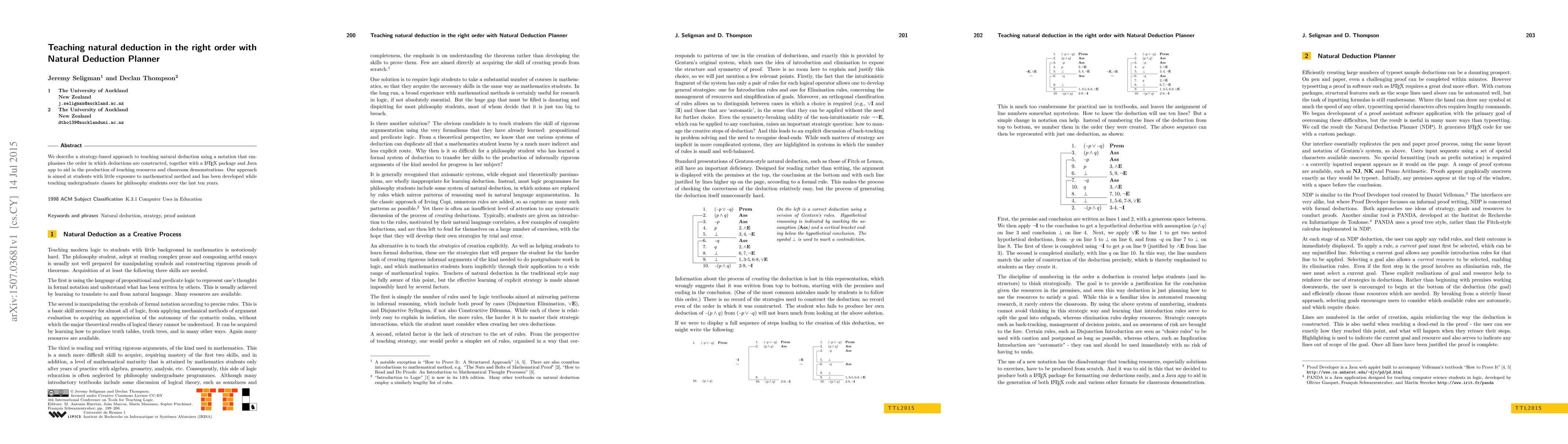 This work is novel in its use of software to support teaching natural deduction strategies, providing a flexible and interactive approach to learning