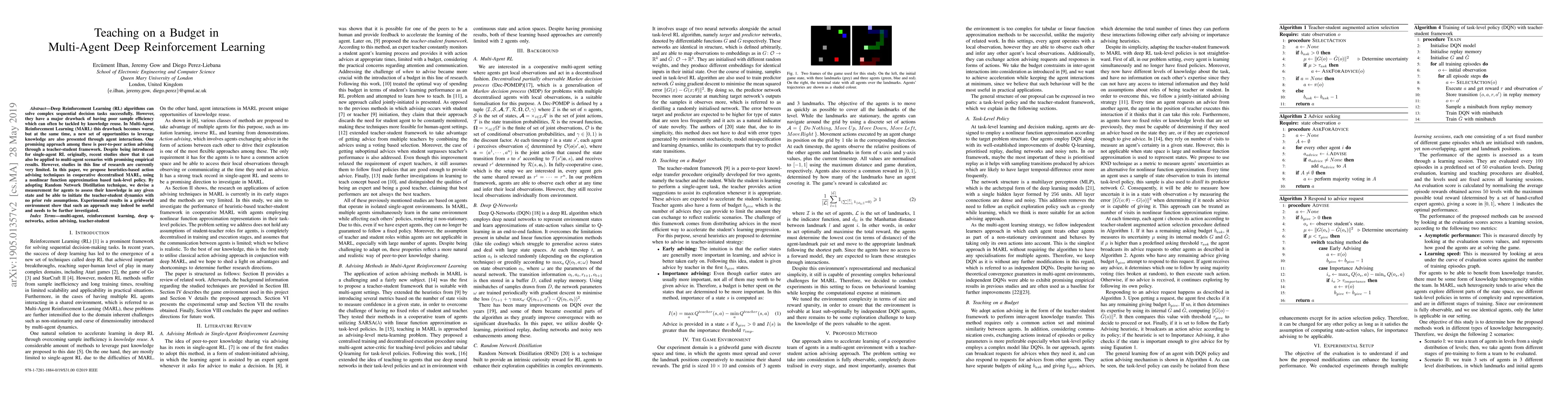 This paper proposes heuristics-based action advising techniques in cooperative decentralised Multi-Agent Reinforcement Learning (MARL) using a teacher-student framework. The Random Network Distillation technique enables agents to assess their knowledge and initiate teacher-student dynamics without predefined roles, showing promising results in a gridworld environment.
