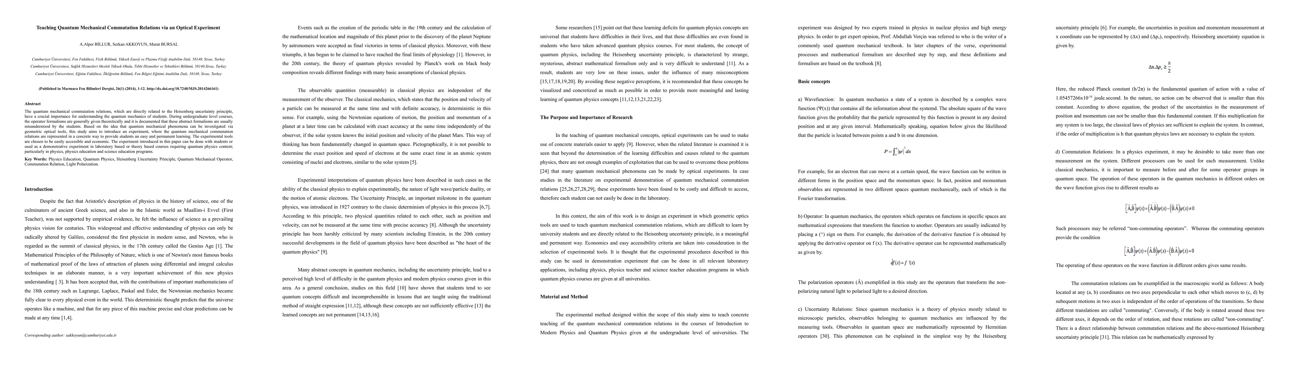 The experiment can be used in various courses requiring quantum physics content, providing a tangible learning experience for students and educators alike.