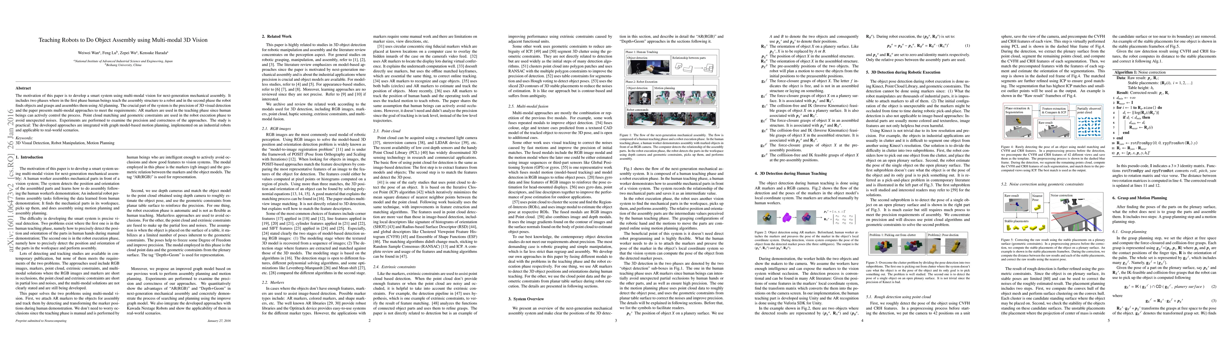 Researchers developed a system that uses multi-modal 3D vision to teach robots object assembly, enabling them to learn from humans and assemble objects with precision. The system combines AR markers, point cloud matching, and geometric constraints to achieve accurate results in real-world scenarios.