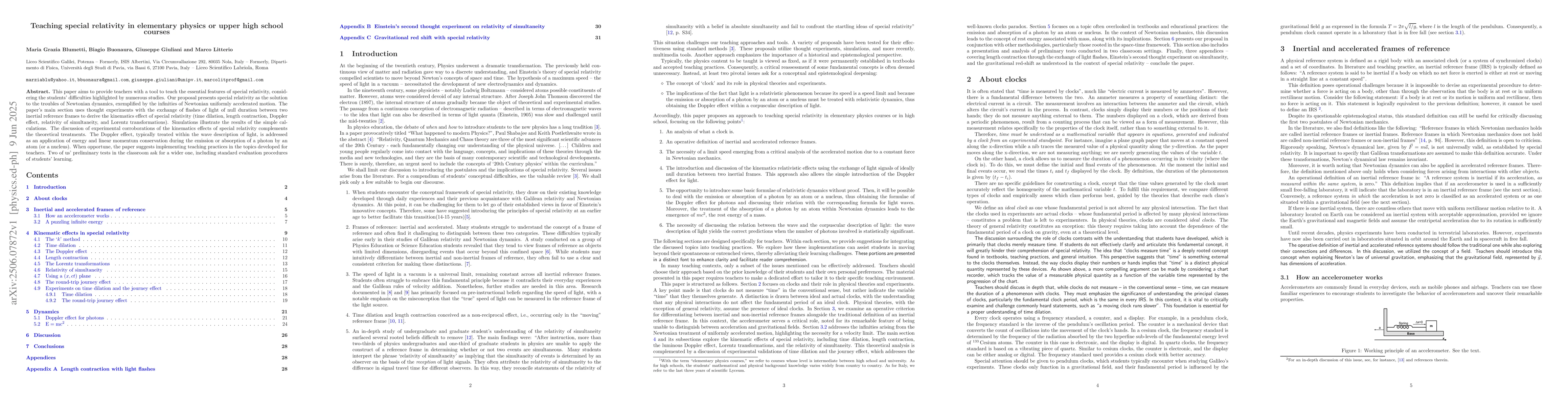 This paper aims to provide teachers with a tool to teach the essential features of special relativity, considering the students' difficulties highlighted by numerous studies. Our proposal presents special relativity as the solution to the troubles of Newtonian dynamics, exemplified by the infinities of Newtonian uniformly accelerated motion. The paper's main section uses thought experiments with the exchange of flashes of light of null duration between two inertial reference frames to derive the kinematics effect of special relativity (time dilation, length contraction, Doppler effect, relativity of simultaneity, and Lorentz transformations). Simulations illustrate the results of the simple calculations. The discussion of experimental corroborations of the kinematics effects of special relativity complements the theoretical treatments. The Doppler effect, typically treated within the wave description of light, is addressed as an application of energy and linear momentum conservation during the emission or absorption of a photon by an atom (or a nucleus). When opportune, the paper suggests implementing teaching practices in the topics developed for teachers. Two of us' preliminary tests in the classroom ask for a wider one, including standard evaluation procedures of students' learning.