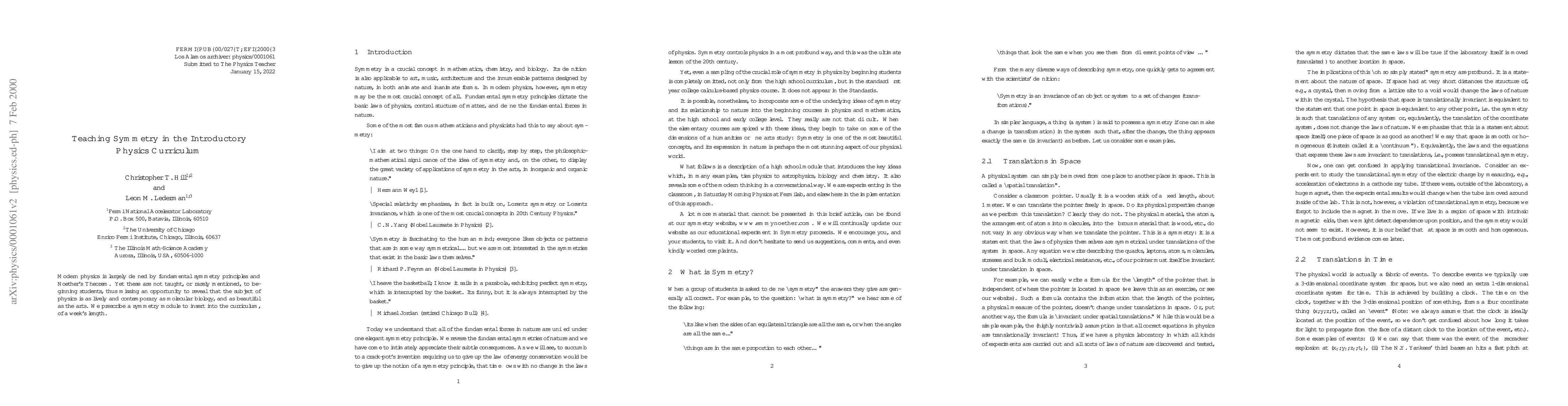 Modern physics is largely defined by fundamental symmetry principles and Noether's Theorem. Yet these are not taught, or rarely mentioned, to beginning students, thus missing an opportunity to reveal that the subject of physics is as lively and contemporary as molecular biology, and as beautiful as the arts. We prescribe a symmetry module to insert into the curriculum, of a week's length.