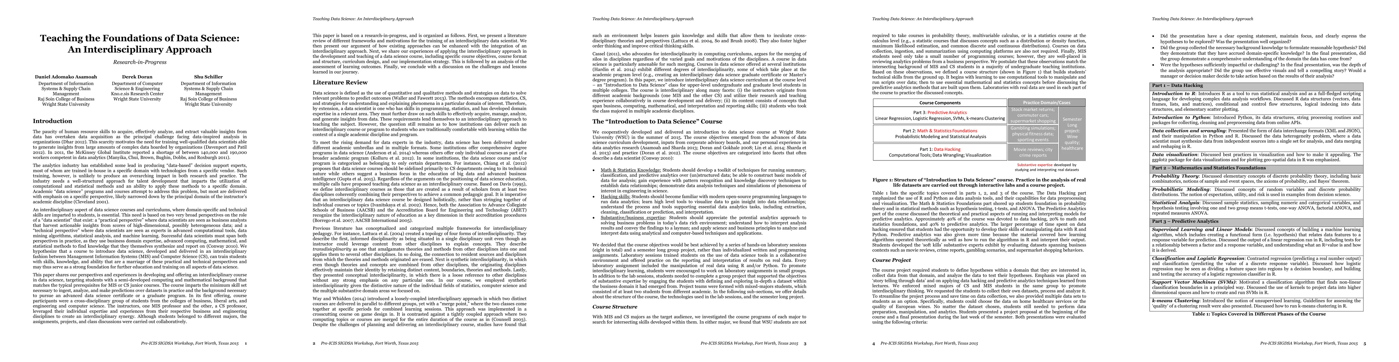 This paper details an interdisciplinary approach to teaching a pioneering Data Science course at Wright State University, combining insights from Management Information Systems and Computer Science. The course fostered collaboration among students from diverse backgrounds, leading to positive learning outcomes and satisfaction.
