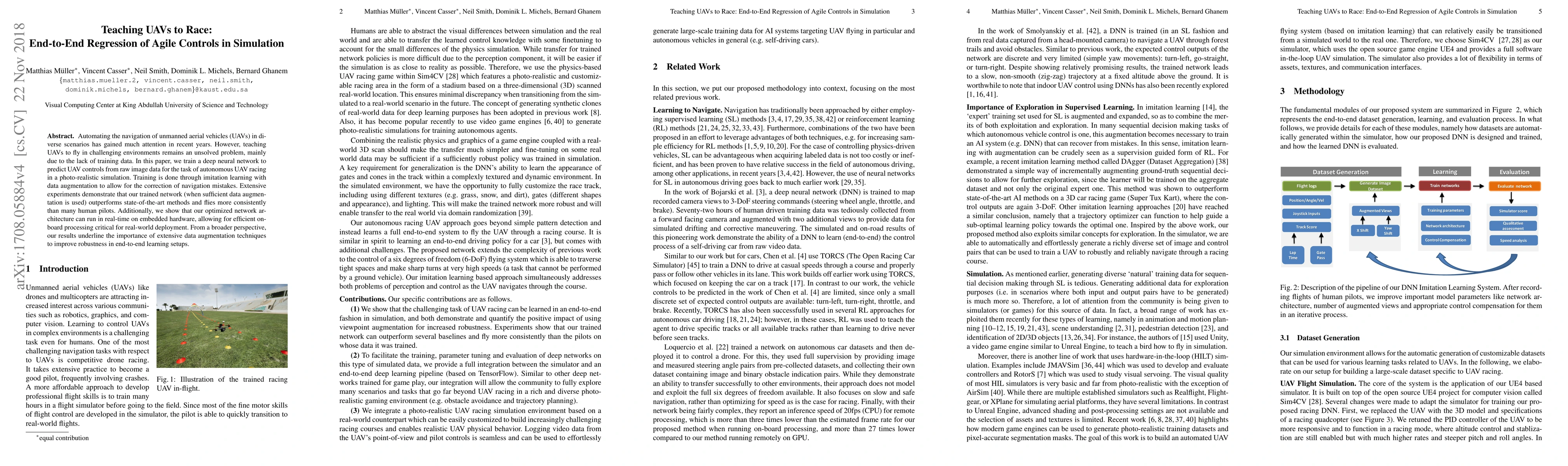 This paper trains a deep neural network using imitation learning to predict UAV controls from raw image data for autonomous racing in a simulation, achieving superior performance compared to state-of-the-art methods and human pilots. The study emphasizes the importance of data augmentation for robust end-to-end learning and demonstrates real-time on-board processing capability.