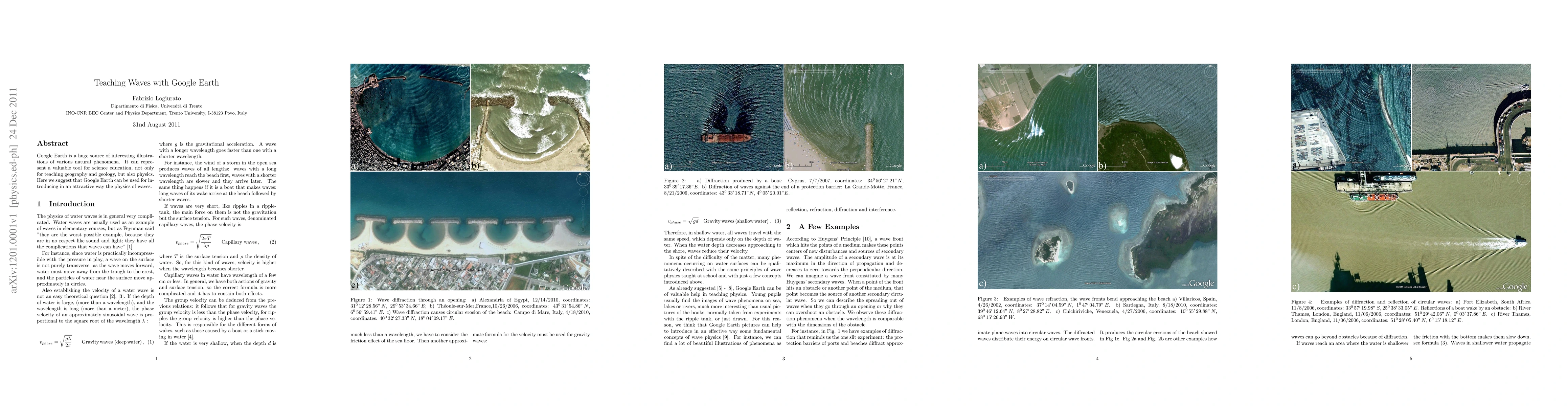 Summary: This paper explores the potential of Google Earth as an educational tool for teaching wave physics, leveraging its visual capabilities to illustrate natural phenomena and enhance students' understanding of wave concepts.
