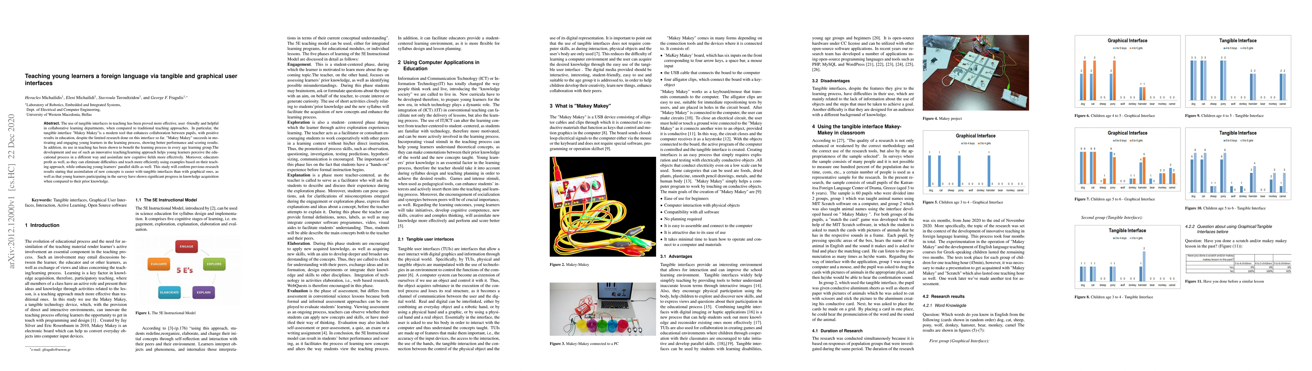 This study investigates the effectiveness of "Makey Makey" tangible interfaces in teaching foreign languages to young learners, demonstrating enhanced engagement, collaboration, and improved performance compared to traditional methods. Results confirm that tangible interfaces facilitate better knowledge acquisition and cognitive assimilation than graphical interfaces.