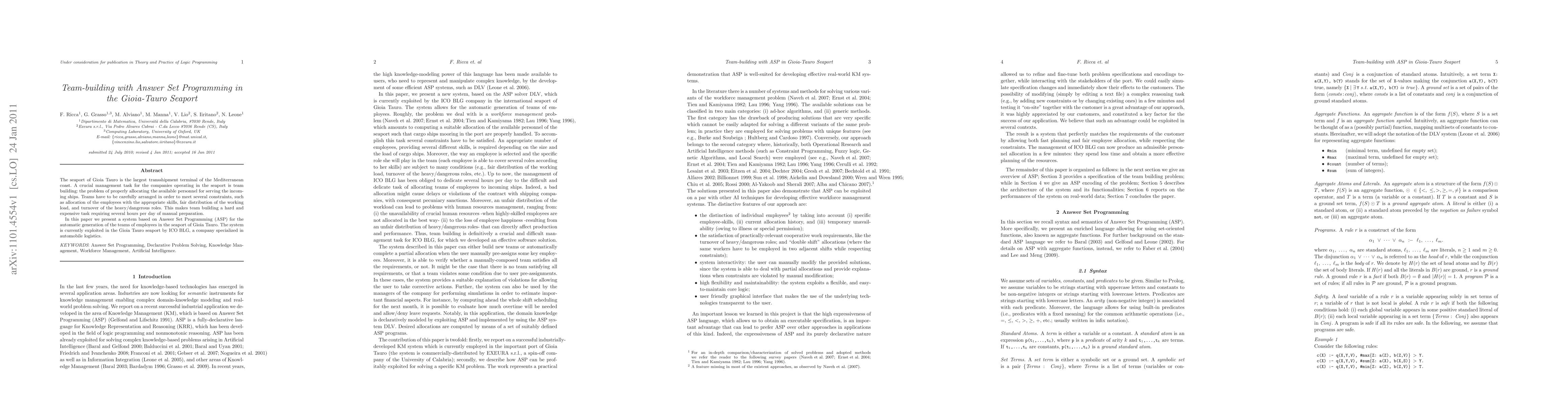 (To appear in Theory and Practice of Logic Programming (TPLP).) The seaport of Gioia Tauro is the largest transshipment terminal of the Mediterranean coast. A crucial management task for the companies operating in the seaport is team building: the problem of properly allocating the available personnel for serving the incoming ships. Teams have to be carefully arranged in order to meet several constraints, such as allocation of the employees with the appropriate skills, fair distribution of the working load, and turnover of the heavy/dangerous roles. This makes team building a hard and expensive task requiring several hours per day of manual preparation. In this paper we present a system based on Answer Set Programming (ASP) for the automatic generation of the teams of employees in the seaport of Gioia Tauro. The system is currently exploited in the Gioia Tauro seaport by ICO BLG, a company specialized in automobile logistics.