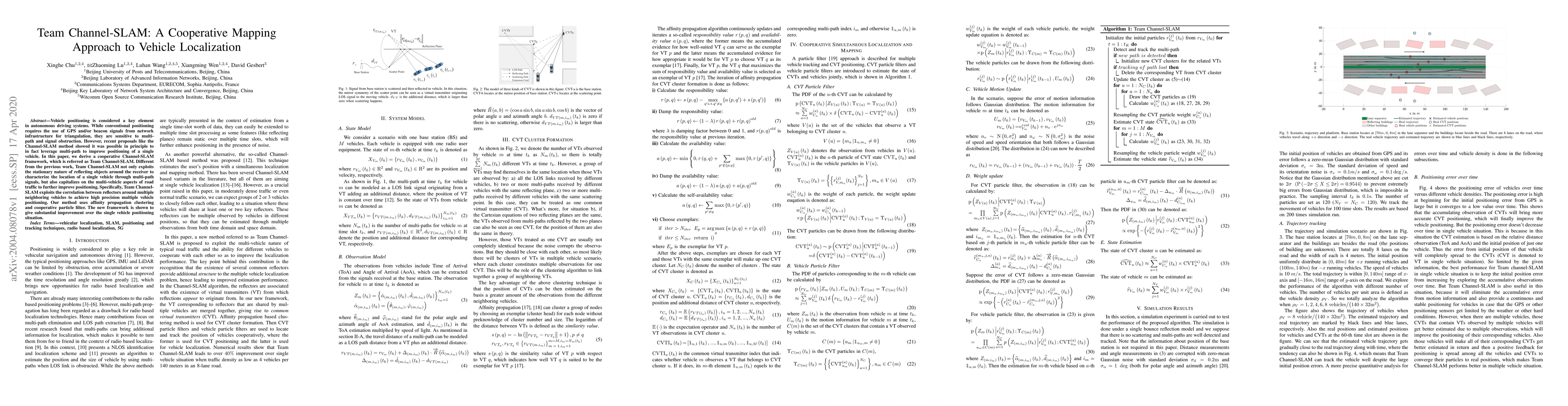 Vehicle positioning is considered a key element in autonomous driving systems. While conventional positioning requires the use of GPS and/or beacon signals from network infrastructure for triangulation, they are sensitive to multi-path and signal obstruction. However, recent proposals like the Channel-SLAM method showed it was possible in principle to in fact leverage multi-path to improve positioning of a single vehicle. In this paper, we derive a cooperative Channel-SLAM framework, which is referred as Team Channel-SLAM. Different from the previous work, Team Channel-SLAM not only exploits the stationary nature of reflecting objects around the receiver to characterize the location of a single vehicle through multi-path signals, but also capitalizes on the multi-vehicle aspects of road traffic to further improve positioning.Specifically, Team Channel-SLAM exploits the correlation between reflectors around multiple neighboring vehicles to achieve high precision multiple vehicle positioning. Our method uses affinity propagation clustering and cooperative particle filter. The new framework is shown to give substantial improvement over the single vehicle positioning situation.