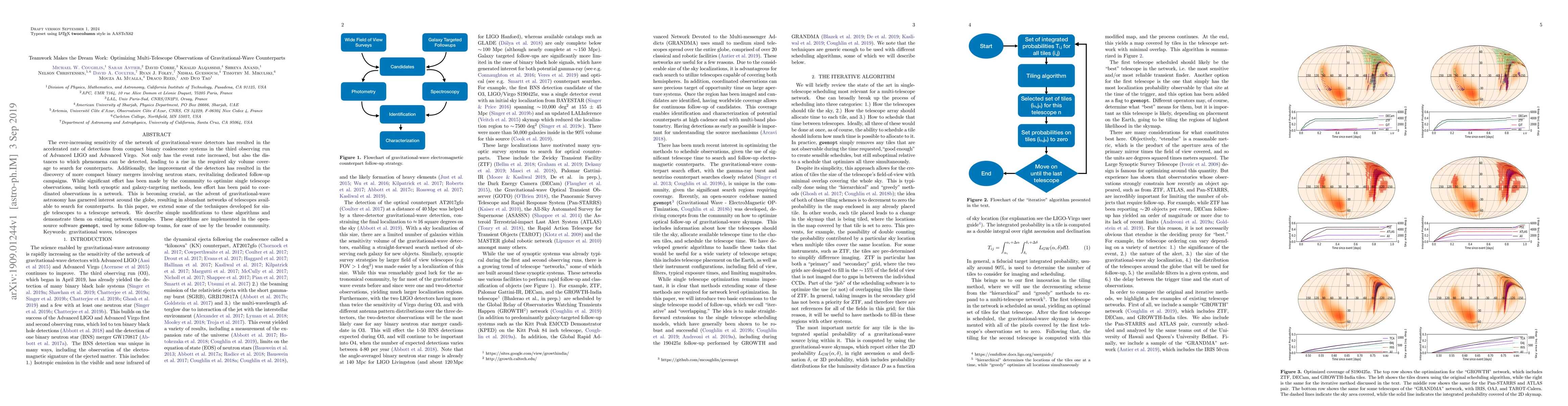 The ever-increasing sensitivity of the network of gravitational-wave detectors has resulted in the accelerated rate of detections from compact binary coalescence systems in the third observing run of Advanced LIGO and Advanced Virgo. Not only has the event rate increased, but also the distances to which phenomena can be detected, leading to a rise in the required sky volume coverage to search for counterparts. Additionally, the improvement of the detectors has resulted in the discovery of more compact binary mergers involving neutron stars, revitalizing dedicated follow-up campaigns. While significant effort has been made by the community to optimize single telescope observations, using both synoptic and galaxy-targeting methods, less effort has been paid to coordinated observations in a network. This is becoming crucial, as the advent of gravitational-wave astronomy has garnered interest around the globe, resulting in abundant networks of telescopes available to search for counterparts. In this paper, we extend some of the techniques developed for single telescopes to a telescope network. We describe simple modifications to these algorithms and demonstrate them on existing network examples. These algorithms are implemented in the open-source software \texttt{gwemopt}, used by some follow-up teams, for ease of use by the broader community.