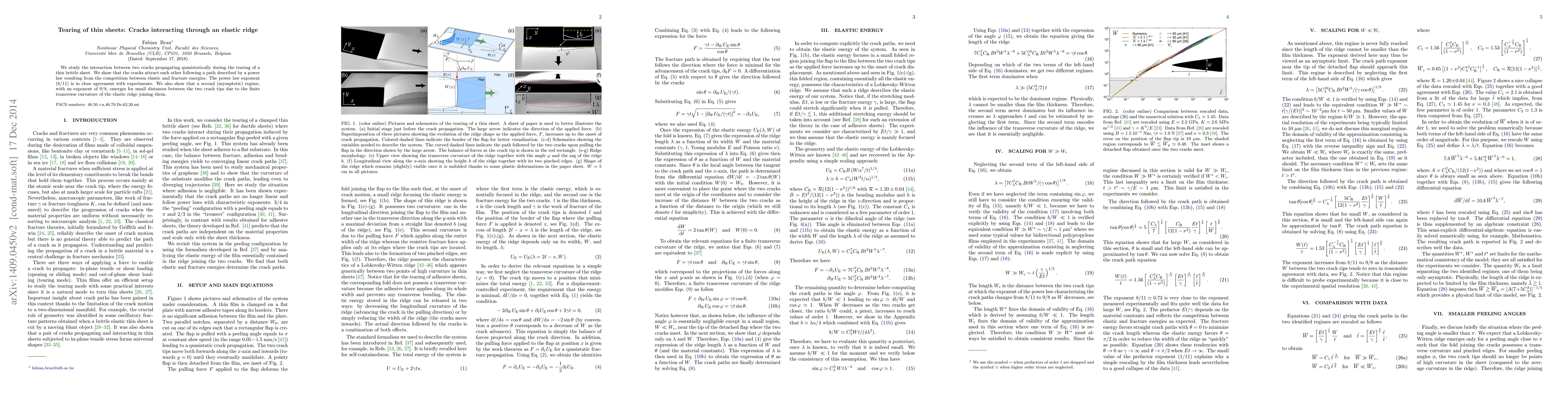 This paper investigates the quasistatic interaction between two cracks in a thin brittle sheet, demonstrating that the cracks follow an attractive path governed by a power law influenced by the balance of elastic and fracture energies, with an exponent of 8/11 matching experimental results. It also reveals a secondary regime with an exponent of 9/8 for very close crack tips due to the sheet's finite transverse curvature.