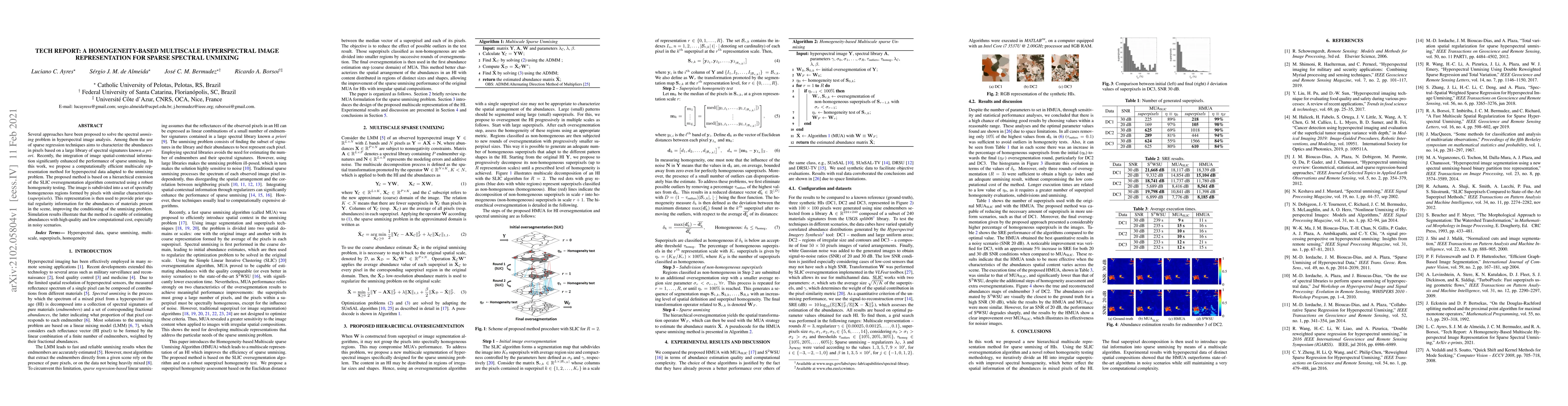 Several approaches have been proposed to solve the spectral unmixing problem in hyperspectral image analysis. Among them the use of sparse regression techniques aims to characterize the abundances in pixels based on a large library of spectral signatures known a priori. Recently, the integration of image spatial-contextual information significantly enhanced the performance of sparse unmixing. In this work, we propose a computationally efficient multiscale representation method for hyperspectral data adapted to the unmixing problem. The proposed method is based on a hierarchical extension of the SLIC oversegmentation algorithm constructed using a robust homogeneity testing. The image is subdivided into a set of spectrally homogeneous regions formed by pixels with similar characteristics (superpixels). This representation is then used to provide prior spatial regularity information for the abundances of materials present in the scene, improving the conditioning of the unmixing problem. Simulation results illustrate that the method is capable of estimating abundances with high quality and low computational cost, especially in noisy scenarios.
