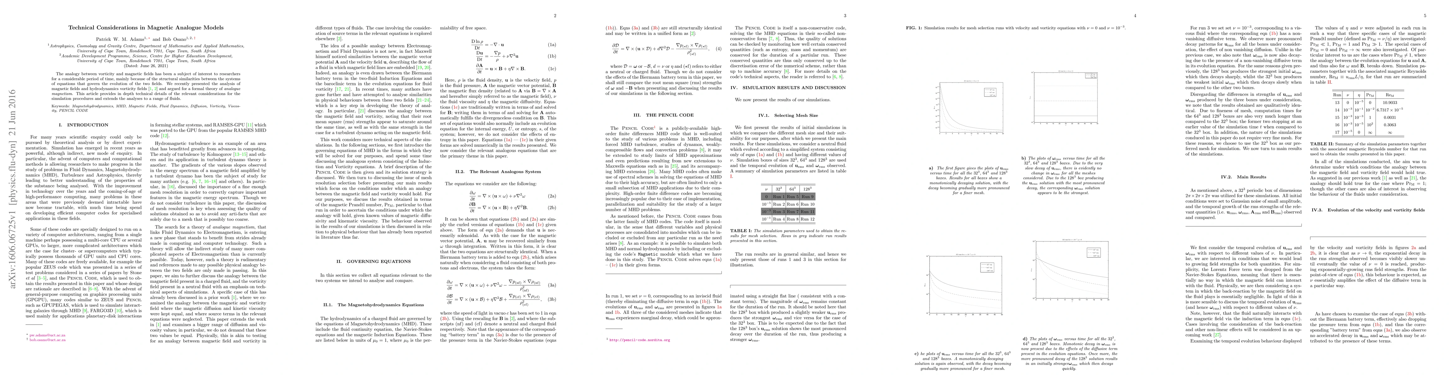 The analogy between vorticity and magnetic fields has been a subject of interest to researchers for a considerable period of time, mainly because of the structural similarities between the systems of equations that govern the evolution of the two fields. We recently presented the analysis of magnetic fields and hydrodynamics vorticity fields and argued for a formal theory of analogue magnetism. This article provides in depth technical details of the relevant considerations for the simulation procedures and extends the analyses to a range of fluids.