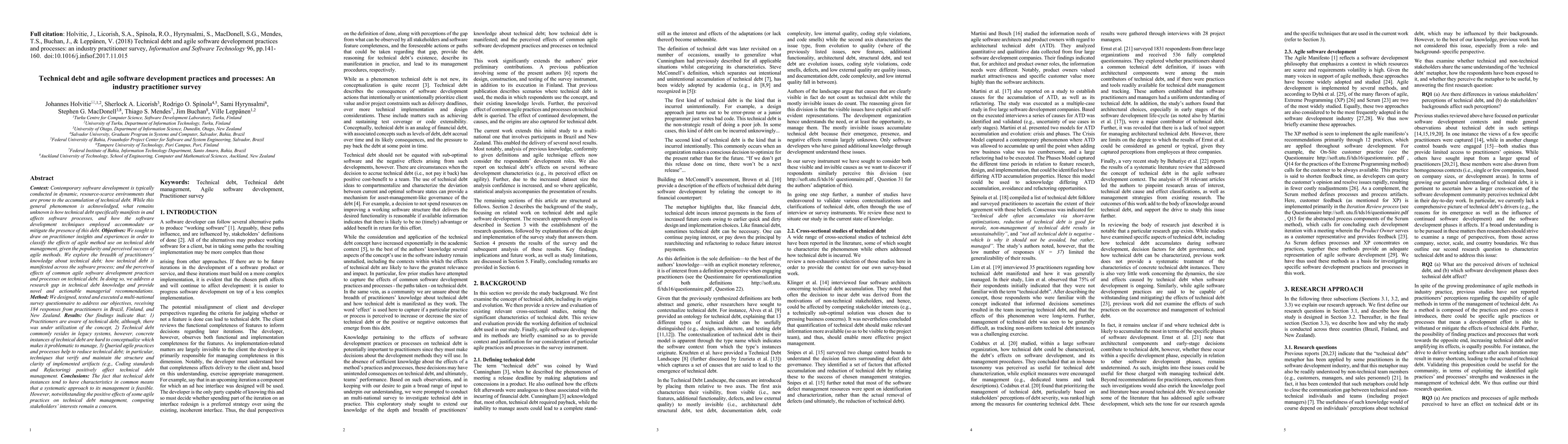 This study surveys practitioners across Brazil, Finland, and New Zealand to explore how technical debt manifests in agile software development and its management. Findings reveal that while practitioners recognize technical debt, its management is challenging due to its conceptual ambiguity, but agile practices like maintaining code clarity help mitigate it. The study highlights the need for systematic approaches to technical debt management despite stakeholder conflicts.