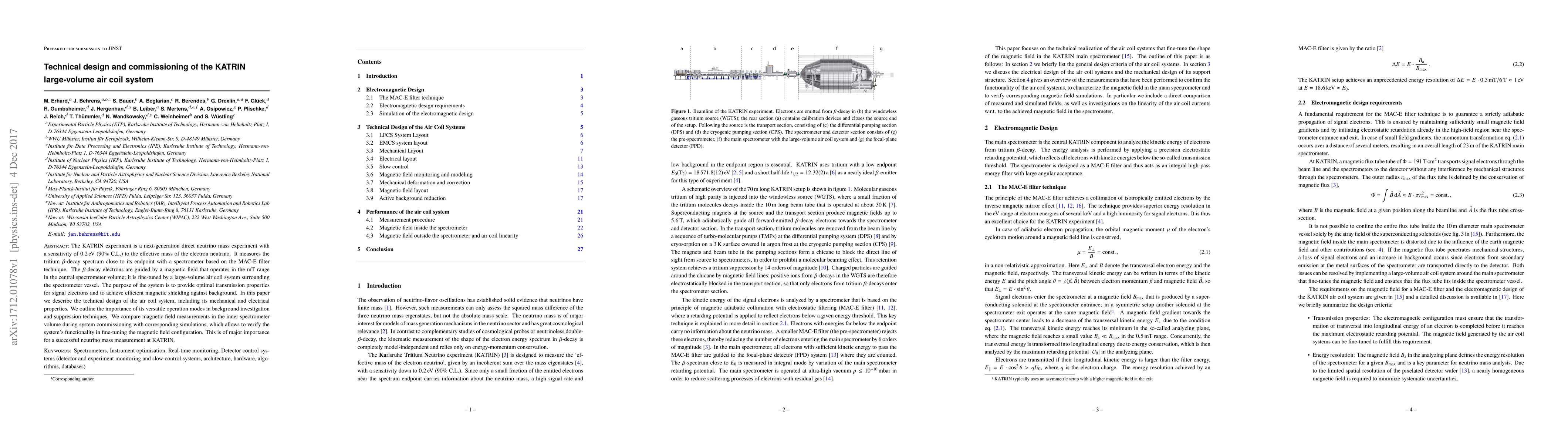 This paper details the technical design and commissioning of the KATRIN experiment's large-volume air coil system, which fine-tunes the magnetic field for optimal electron transmission and magnetic shielding. It compares measured magnetic field configurations during commissioning with simulations to verify the system's functionality for precise neutrino mass measurement.