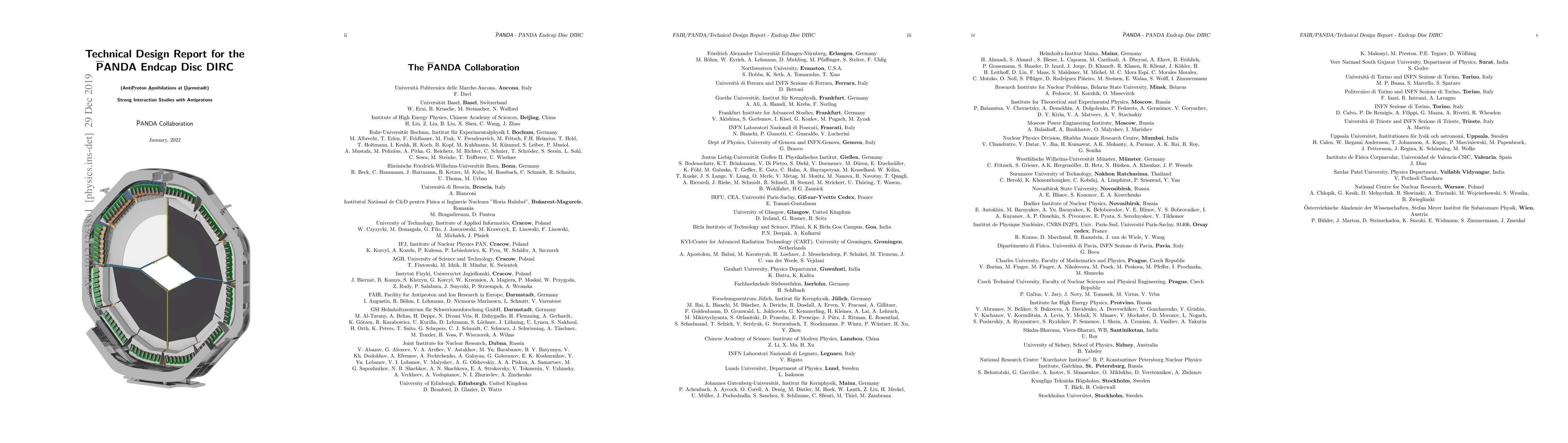 This report details the technical design of the PANDA Endcap Disc DIRC, a novel Cherenkov detector for particle identification in the PANDA experiment at FAIR. It utilizes internally reflected Cherenkov light to distinguish between pions and kaons, achieving high separation power validated through Monte-Carlo simulations and beam tests.