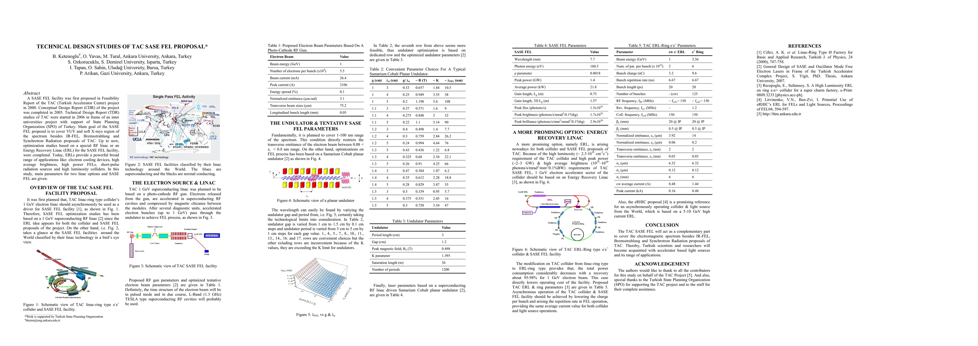 A SASE FEL facility was first proposed in Feasibility Report of the TAC (Turkish Accelerator Center) project in 2000. Conceptual Design Report (CDR) of the project was completed in 2005. Technical Design Report (TDR) studies of TAC were started in 2006 in frame of an inter universities project with support of State Planning Organization (SPO) of Turkey. Main goal of the SASE FEL proposal is to cover VUV and soft X-rays region of the spectrum besides IR-FEL, Bremsstrahlung and Synchrotron Radiation proposals of TAC. Up to now, optimization studies based on a special RF linac or an Energy Recovery Linac (ERL) for the SASE FEL facility, were completed. Today, ERLs provide a powerful broad range of applications like: electron cooling devices, high average brightness, high power FELs, short-pulse radiation sources and high luminosity colliders. In this study, main parameters for two linac options and SASE FEL are given.