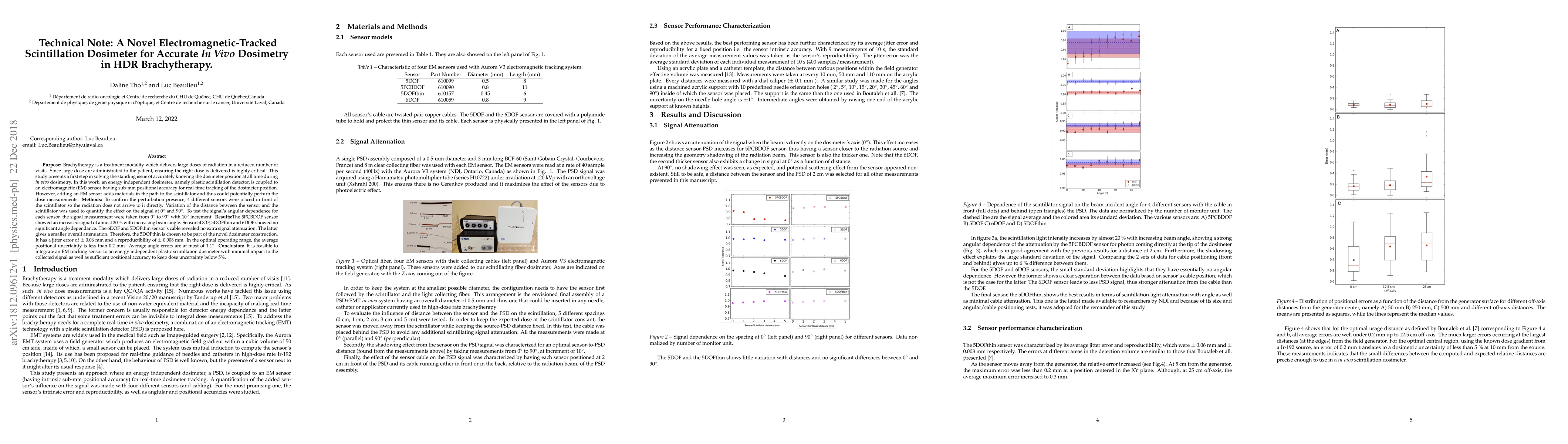 This study introduces a novel electromagnetic-tracked scintillation dosimeter for precise in vivo dosimetry in high-dose-rate brachytherapy. The integration of an electromagnetic sensor with a plastic scintillation detector ensures real-time positional tracking with sub-mm accuracy, while maintaining minimal signal perturbation and dose uncertainty below 5%.