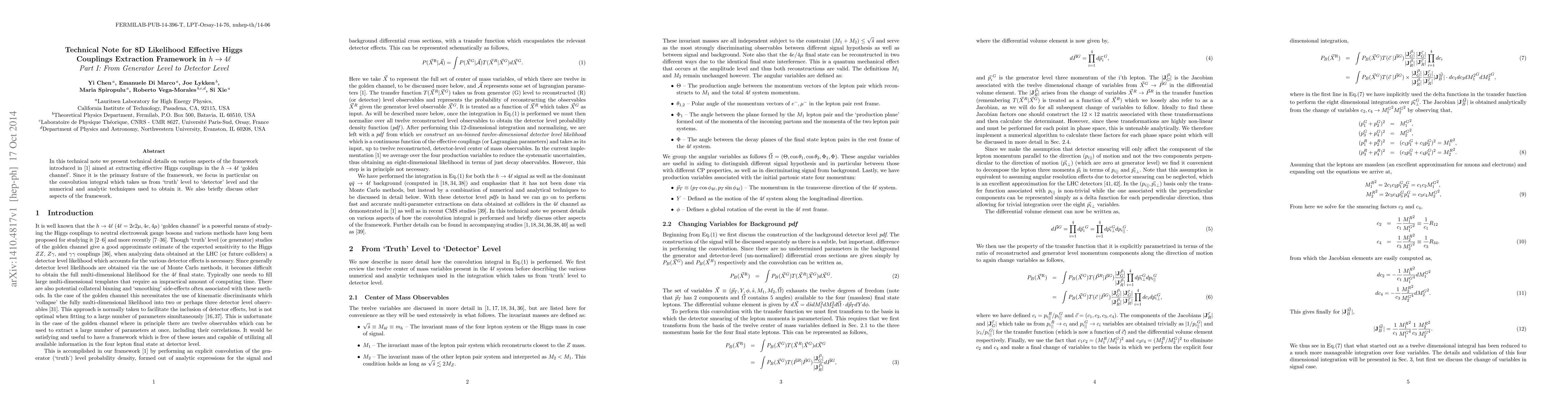 In this technical note we present technical details on various aspects of the framework introduced in arXiv:1401.2077 aimed at extracting effective Higgs couplings in the $h\to 4\ell$ `golden channel'. Since it is the primary feature of the framework, we focus in particular on the convolution integral which takes us from `truth' level to `detector' level and the numerical and analytic techniques used to obtain it. We also briefly discuss other aspects of the framework.