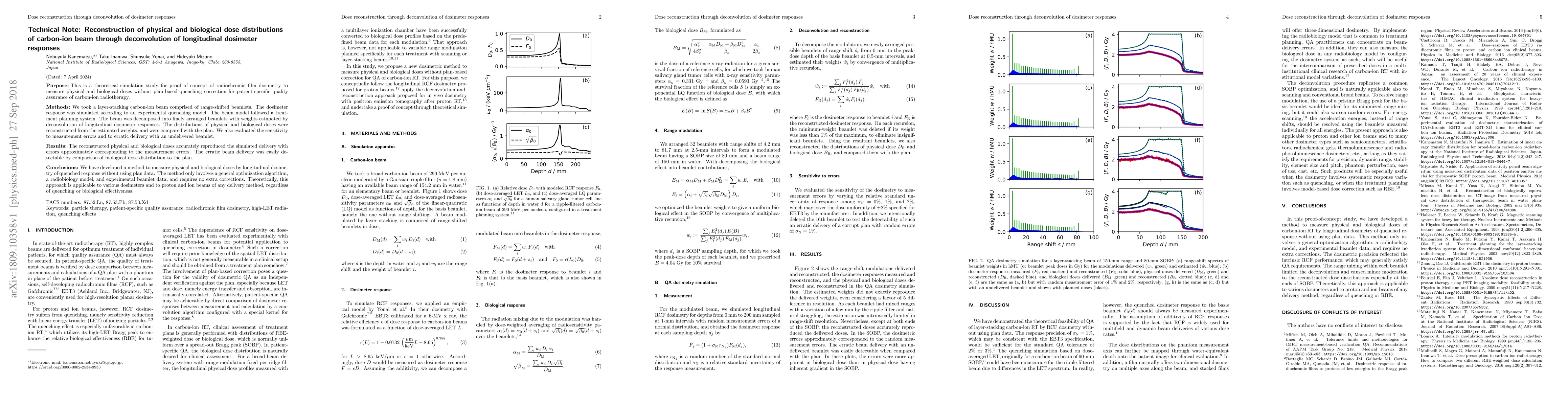 This study presents a theoretical simulation for reconstructing physical and biological dose distributions in carbon-ion beam therapy using radiochromic film dosimetry and deconvolution of longitudinal dosimeter responses without plan-based quenching correction. The method was shown to accurately reproduce simulated deliveries and detect erratic beam deliveries.
