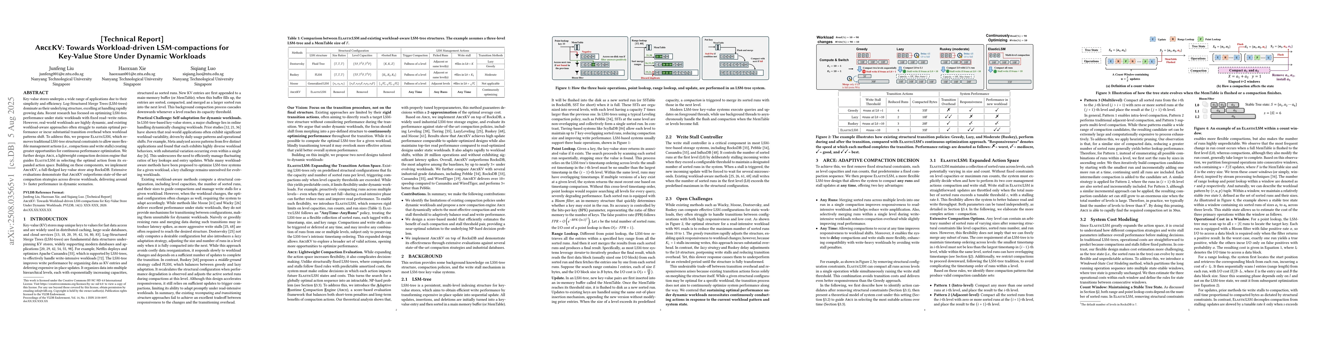 Key-value stores underpin a wide range of applications due to their simplicity and efficiency. Log-Structured Merge Trees (LSM-trees) dominate as their underlying structure, excelling at handling rapidly growing data. Recent research has focused on optimizing LSM-tree performance under static workloads with fixed read-write ratios. However, real-world workloads are highly dynamic, and existing workload-aware approaches often struggle to sustain optimal performance or incur substantial transition overhead when workload patterns shift. To address this, we propose ElasticLSM, which removes traditional LSM-tree structural constraints to allow more flexible management actions (i.e., compactions and write stalls) creating greater opportunities for continuous performance optimization. We further design Arce, a lightweight compaction decision engine that guides ElasticLSM in selecting the optimal action from its expanded action space. Building on these components, we implement ArceKV, a full-fledged key-value store atop RocksDB. Extensive evaluations demonstrate that ArceKV outperforms state-of-the-art compaction strategies across diverse workloads, delivering around 3x faster performance in dynamic scenarios.