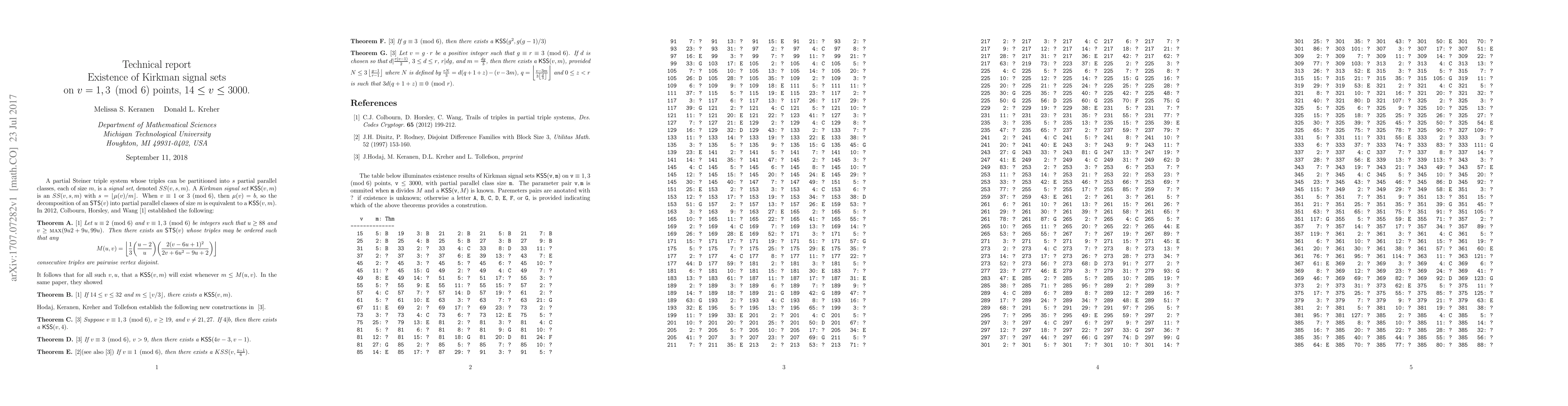 A partial Steiner triple system whose triples can be partitioned into $s$ partial parallel classes, each of size $m$, is a $signal$ $set$, denoted $\mbox{SS}(v,s,m)$. A $Kirkman$ $signal$ $set$ $\mbox{KSS}(v,m)$ is an $\mbox{SS}(v,s,m)$ with $s=\lfloor\mu(v)/m\rfloor$. When $v \equiv 1$ or $3 \pmod{6}$, then $\mu(v)=b$, so the decomposition of an $\mbox{STS}(v)$ into partial parallel classes of size $m$ is equivalent to a $\mbox{KSS}(v,m)$. Table of known existence results is given.