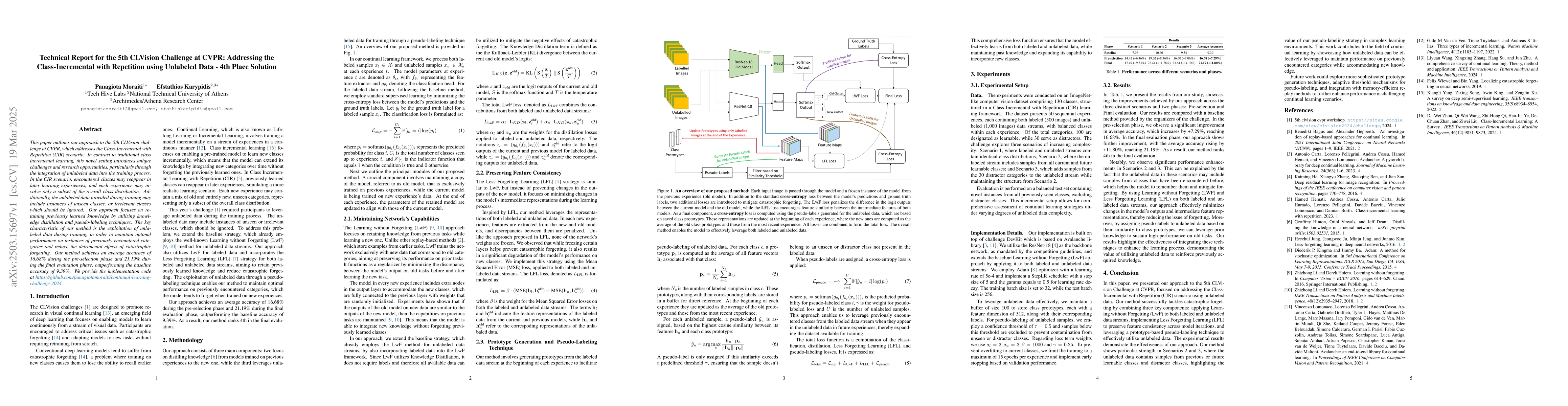 This paper presents a 4th place solution for the 5th CLVision Challenge at CVPR, tackling the Class-Incremental with Repetition scenario using unlabeled data. The method employs knowledge distillation and pseudo-labeling to retain previously learned knowledge and mitigate catastrophic forgetting, achieving an average accuracy of 21.19% in the final evaluation phase.