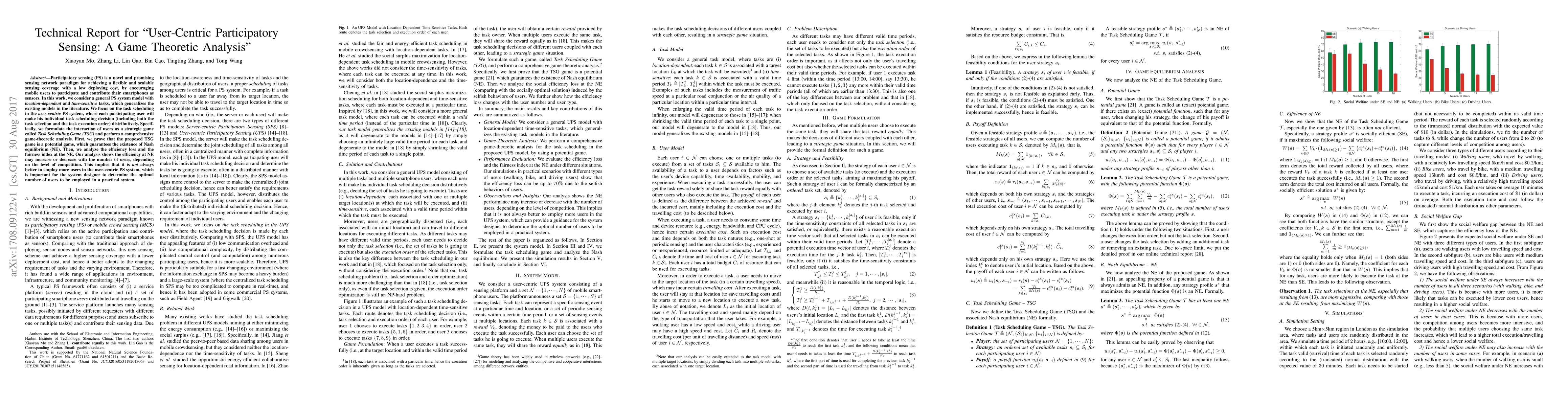 This paper analyzes a user-centric participatory sensing system using game theory, formulating task scheduling as a Task Scheduling Game (TSG). It proves the TSG is a potential game with a Nash equilibrium, and examines efficiency and fairness, revealing that more users do not always improve system efficiency.