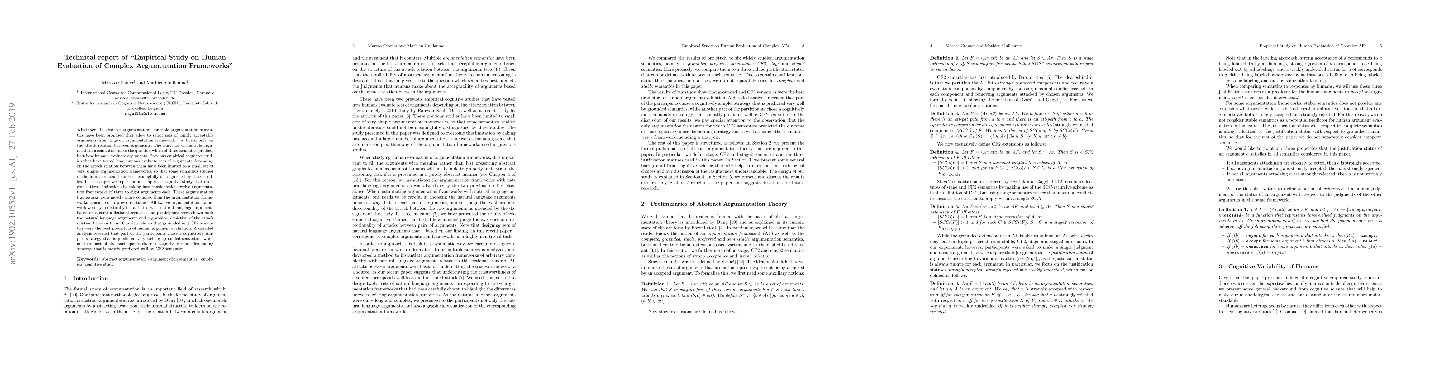 In abstract argumentation, multiple argumentation semantics have been proposed that allow to select sets of jointly acceptable arguments from a given argumentation framework, i.e. based only on the attack relation between arguments. The existence of multiple argumentation semantics raises the question which of these semantics predicts best how humans evaluate arguments. Previous empirical cognitive studies that have tested how humans evaluate sets of arguments depending on the attack relation between them have been limited to a small set of very simple argumentation frameworks, so that some semantics studied in the literature could not be meaningfully distinguished by these studies. In this paper we report on an empirical cognitive study that overcomes these limitations by taking into consideration twelve argumentation frameworks of three to eight arguments each. These argumentation frameworks were mostly more complex than the argumentation frameworks considered in previous studies. All twelve argumentation framework were systematically instantiated with natural language arguments based on a certain fictional scenario, and participants were shown both the natural language arguments and a graphical depiction of the attack relation between them. Our data shows that grounded and CF2 semantics were the best predictors of human argument evaluation. A detailed analysis revealed that part of the participants chose a cognitively simpler strategy that is predicted very well by grounded semantics, while another part of the participants chose a cognitively more demanding strategy that is mostly predicted well by CF2 semantics.