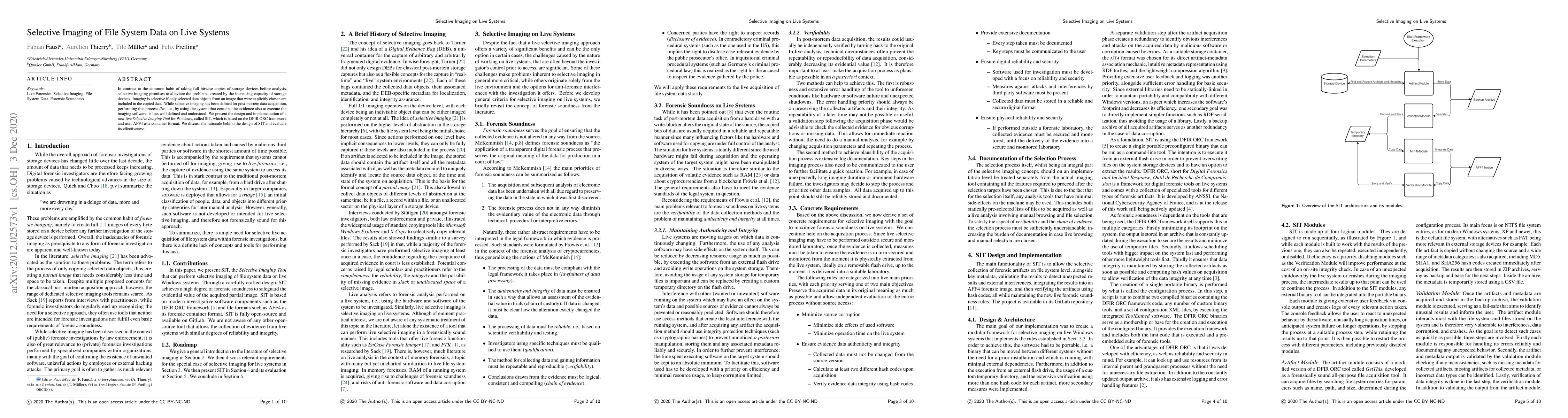 The research presents the design and implementation of a new live Selective Imaging Tool (SIT) for Windows, based on the DFIR ORC framework and using AFF4 as a container format, aiming to address the challenges of selective imaging on live systems.