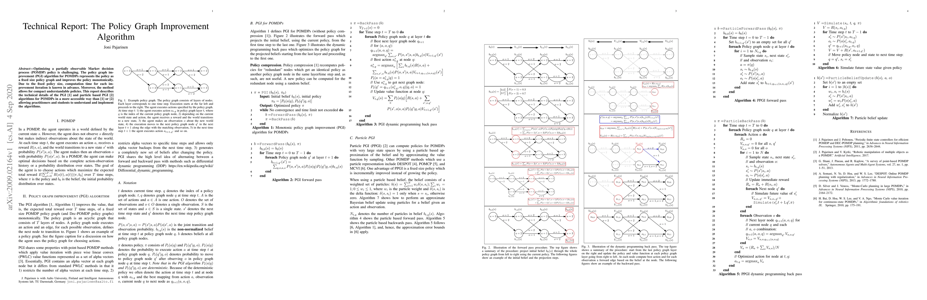 The Policy Graph Improvement (PGI) algorithm optimizes POMDP policies by representing them as fixed-size policy graphs, ensuring predictable computation times and producing compact, understandable policies. This report provides accessible technical details of the PGI and particle-based PGI algorithms for easier implementation by practitioners and students.