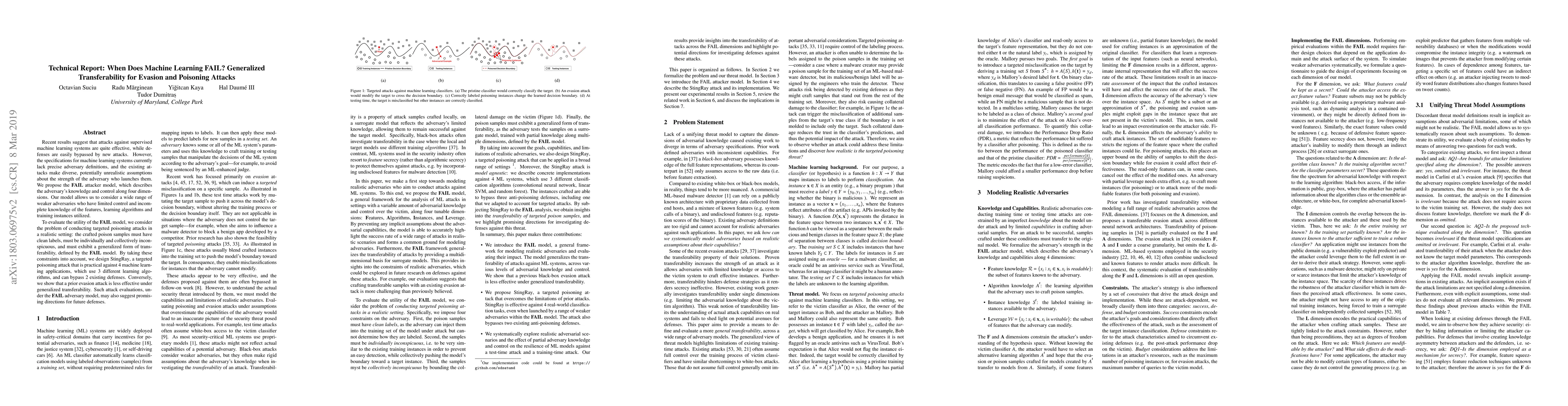 Recent results suggest that attacks against supervised machine learning systems are quite effective, while defenses are easily bypassed by new attacks. However, the specifications for machine learning systems currently lack precise adversary definitions, and the existing attacks make diverse, potentially unrealistic assumptions about the strength of the adversary who launches them. We propose the FAIL attacker model, which describes the adversary's knowledge and control along four dimensions. Our model allows us to consider a wide range of weaker adversaries who have limited control and incomplete knowledge of the features, learning algorithms and training instances utilized. To evaluate the utility of the FAIL model, we consider the problem of conducting targeted poisoning attacks in a realistic setting: the crafted poison samples must have clean labels, must be individually and collectively inconspicuous, and must exhibit a generalized form of transferability, defined by the FAIL model. By taking these constraints into account, we design StingRay, a targeted poisoning attack that is practical against 4 machine learning applications, which use 3 different learning algorithms, and can bypass 2 existing defenses. Conversely, we show that a prior evasion attack is less effective under generalized transferability. Such attack evaluations, under the FAIL adversary model, may also suggest promising directions for future defenses.
