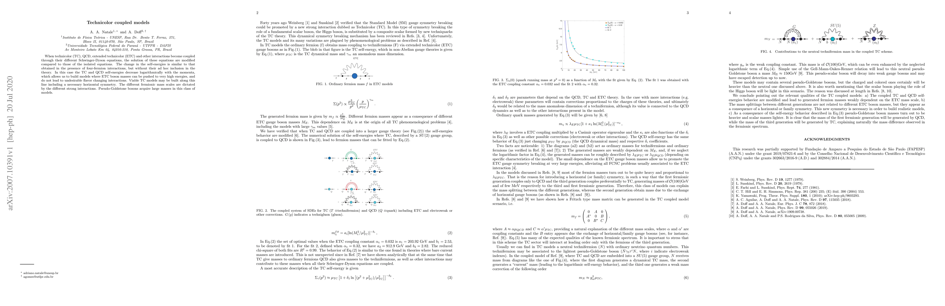 When technicolor (TC), QCD, extended technicolor (ETC) and other interactions become coupled through their different Schwinger-Dyson equations, the solution of these equations are modified compared to those of the isolated equations. The change in the self-energies is similar to that obtained in the presence of four-fermion interactions, but without their ad hoc inclusion in the theory. In this case the TC and QCD self-energies decrease logarithmically with the momenta, which allows us to build models where ETC boson masses can be pushed to very high energies, and do not lead to undesirable flavor changing interactions. Viable TC models may be built along this line including a necessary horizontal symmetry. The different fermionic mass scales are dictated by the different strong interactions. Pseudo-Goldstone bosons acquire large masses in this class of models.