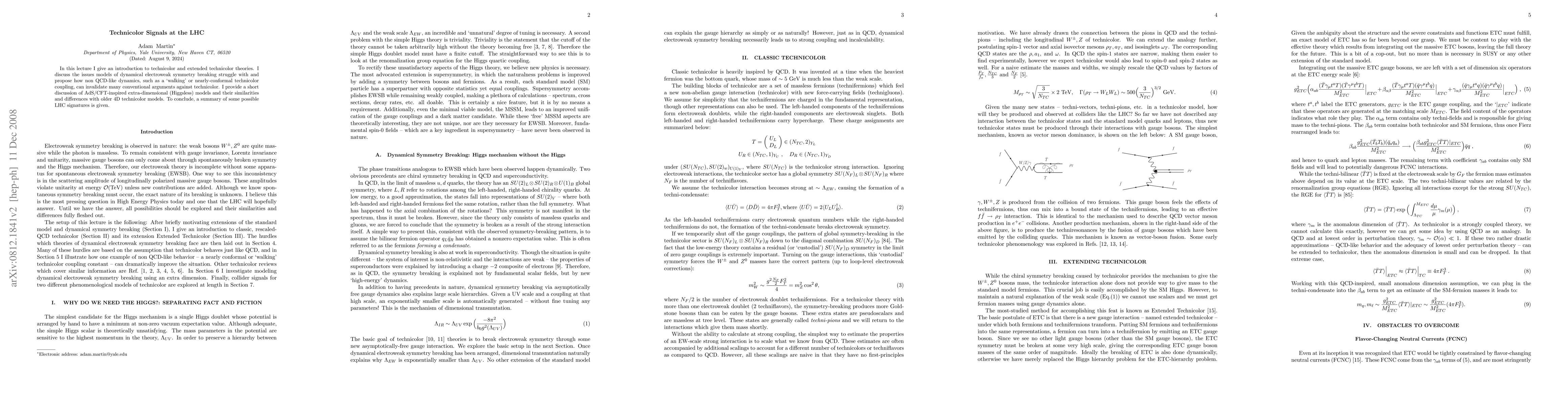 This paper introduces technicolor and extended technicolor theories, addressing challenges faced by dynamical electroweak symmetry breaking models and suggesting that unconventional technicolor dynamics can counter traditional criticisms. It also compares AdS/CFT-inspired Higgsless models with older 4D technicolor models and outlines potential LHC signatures.