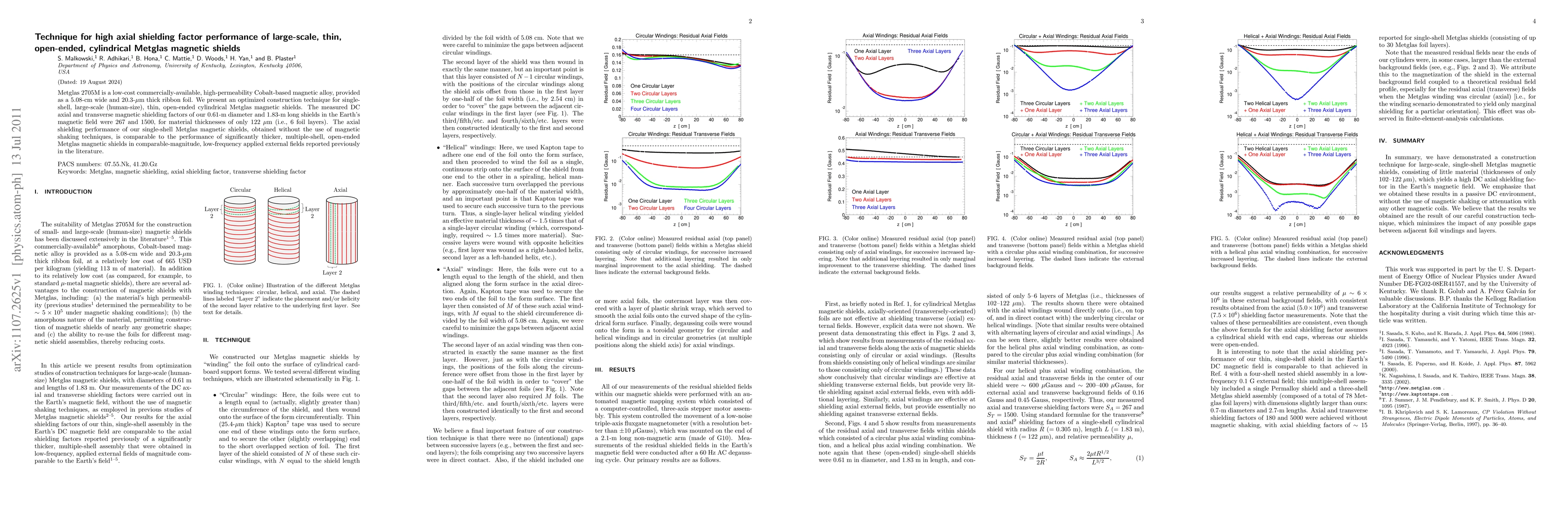 The paper presents an optimized method to build large, thin, open-ended cylindrical magnetic shields using Metglas 2705M, a low-cost magnetic alloy. These shields, 0.61m in diameter and 1.83m long, achieved high axial shielding factors of 267 with just 122μm thickness, rivaling thicker shields' performance without using magnetic shaking techniques.